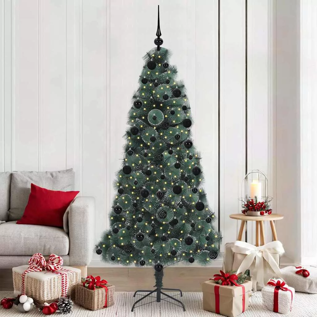 Műfenyő elágazó karácsonyfával labdaszettel Zöld 210 cm PET