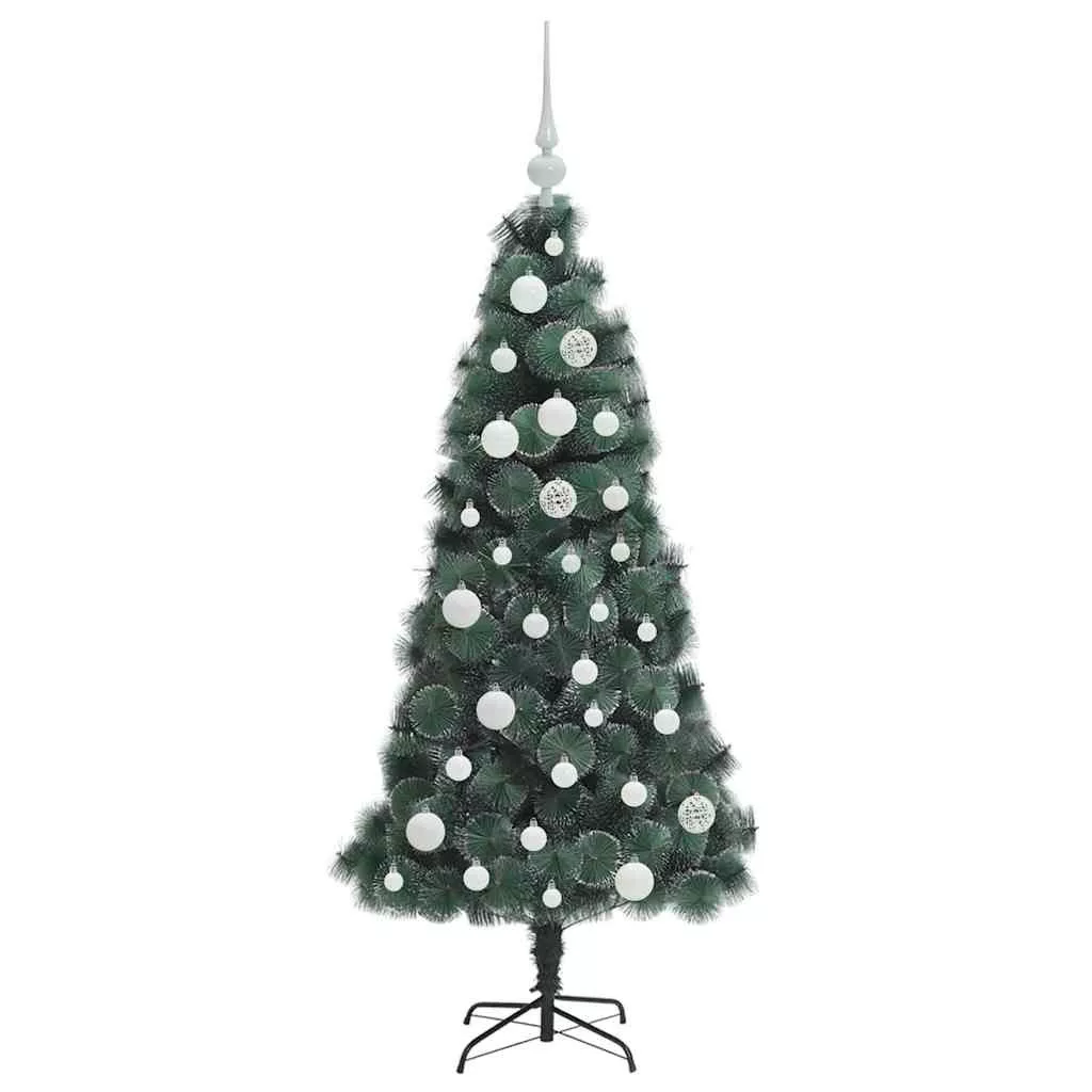 Műfenyő előre világított karácsonyfa gömbkészlettel Zöld 120 cm