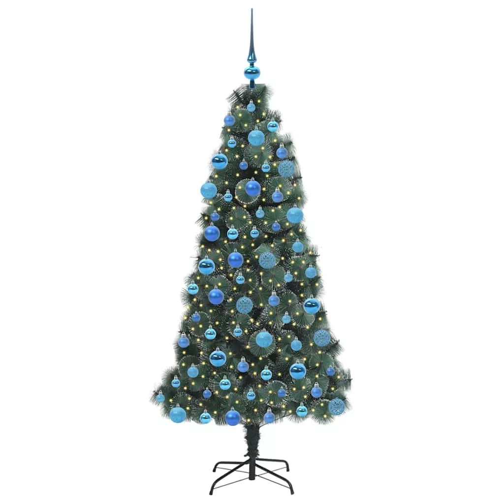 Műfenyő fényfüzéres karácsonyfa gömbkészlettel Zöld 180 cm PET