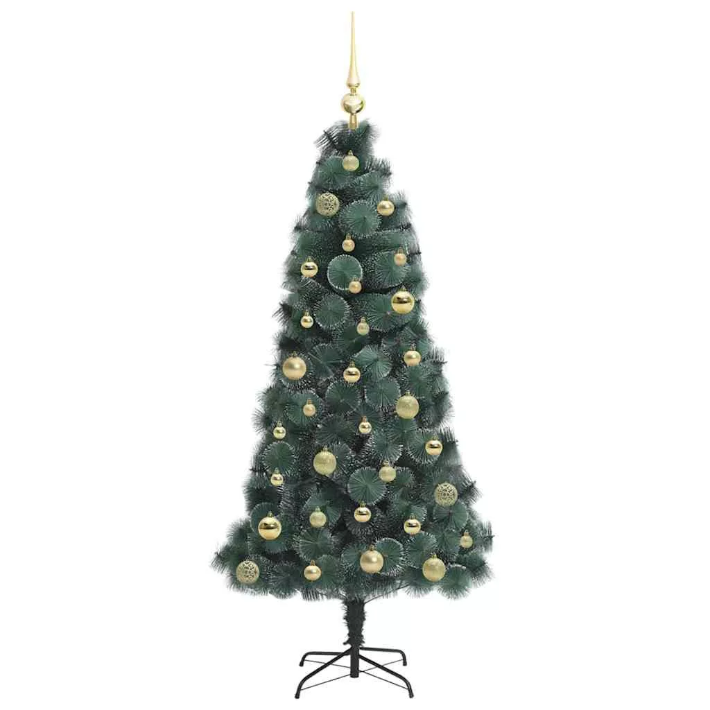 Műfenyő világítással és díszgömb készlettel Zöld 150 cm PET