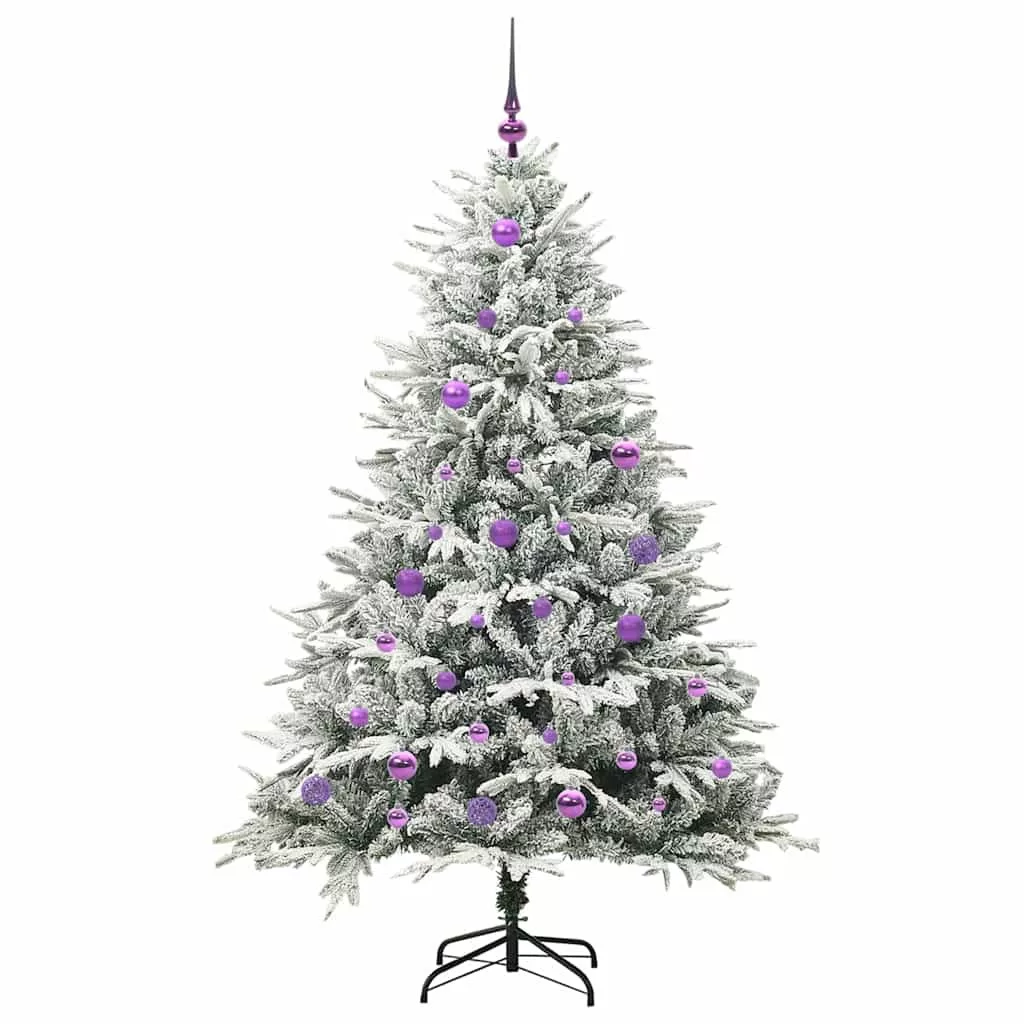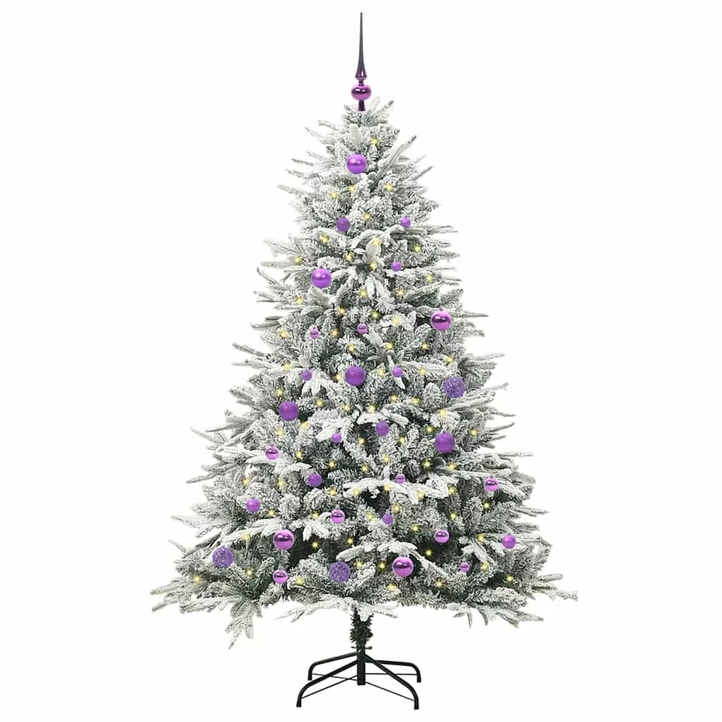Műfenyő világítással és gömbkészlettel Zöld 150 cm PVC és PE