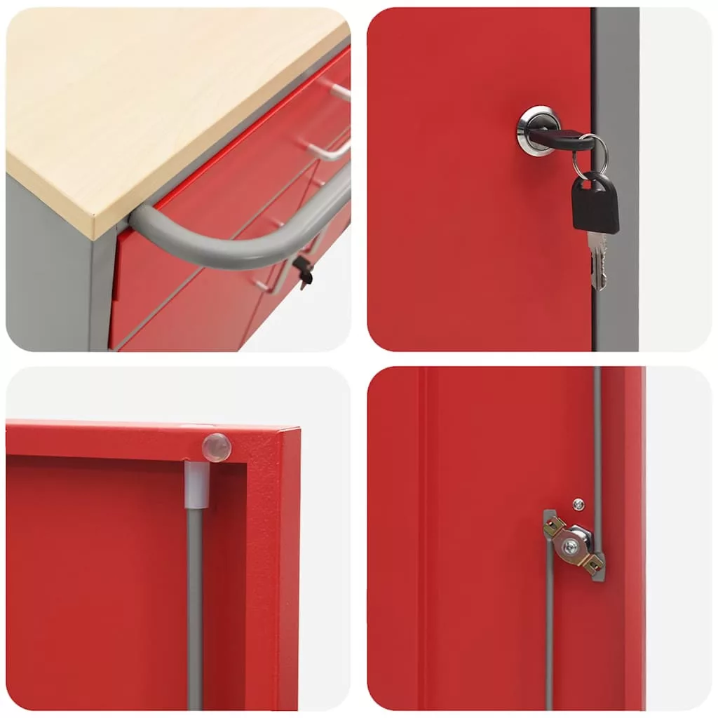 Műhelypad Piros és Szürke 75 x 45 x 85 cm Műszaki fa és acél