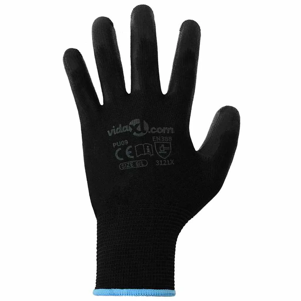 Munkakesztyűk 12 pcs Fekete 9 / l Poliészter