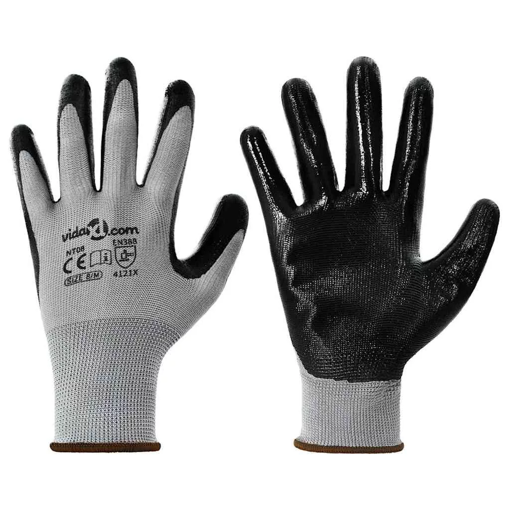 Munkakesztyűk 12 pcs Szürke és fekete 8 / m Poliészter