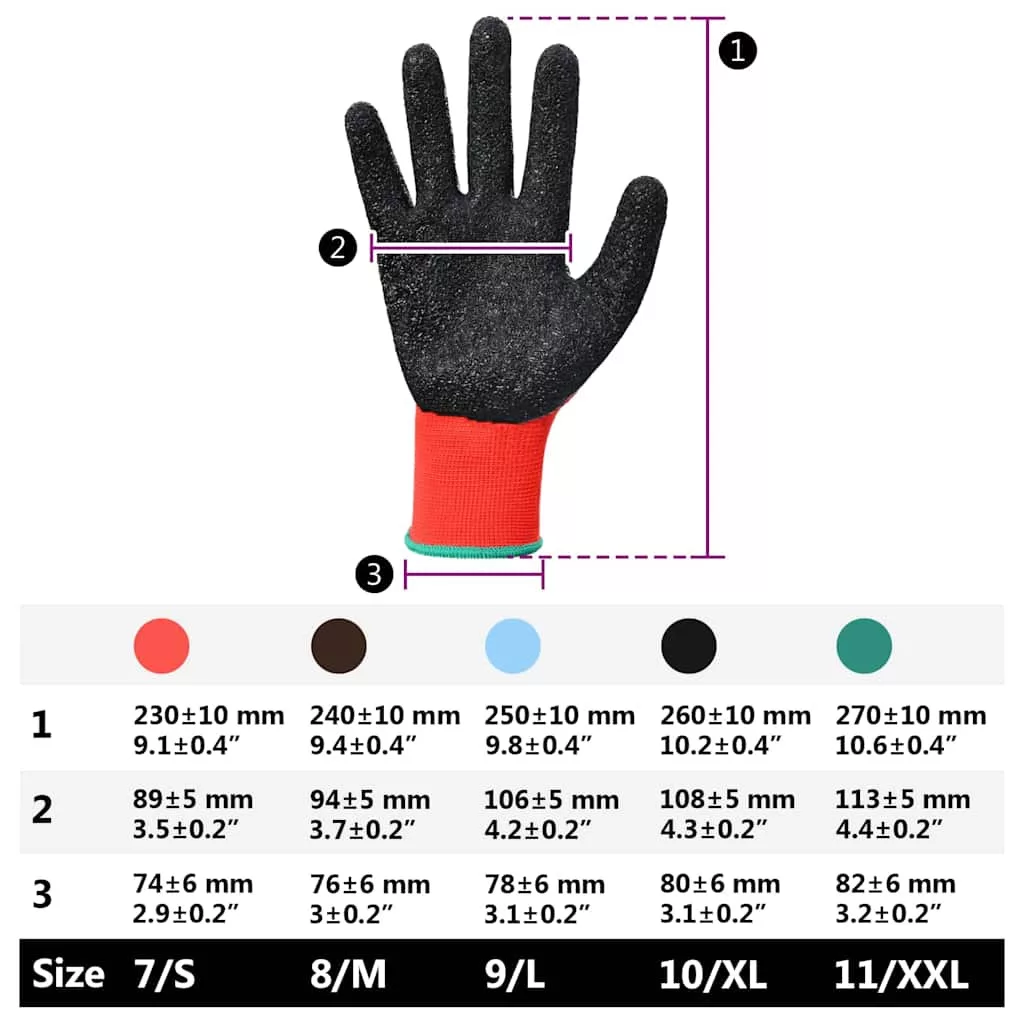 Munkakesztyűk 24 pcs Piros és Fekete 11 / XXL Latex bevonat