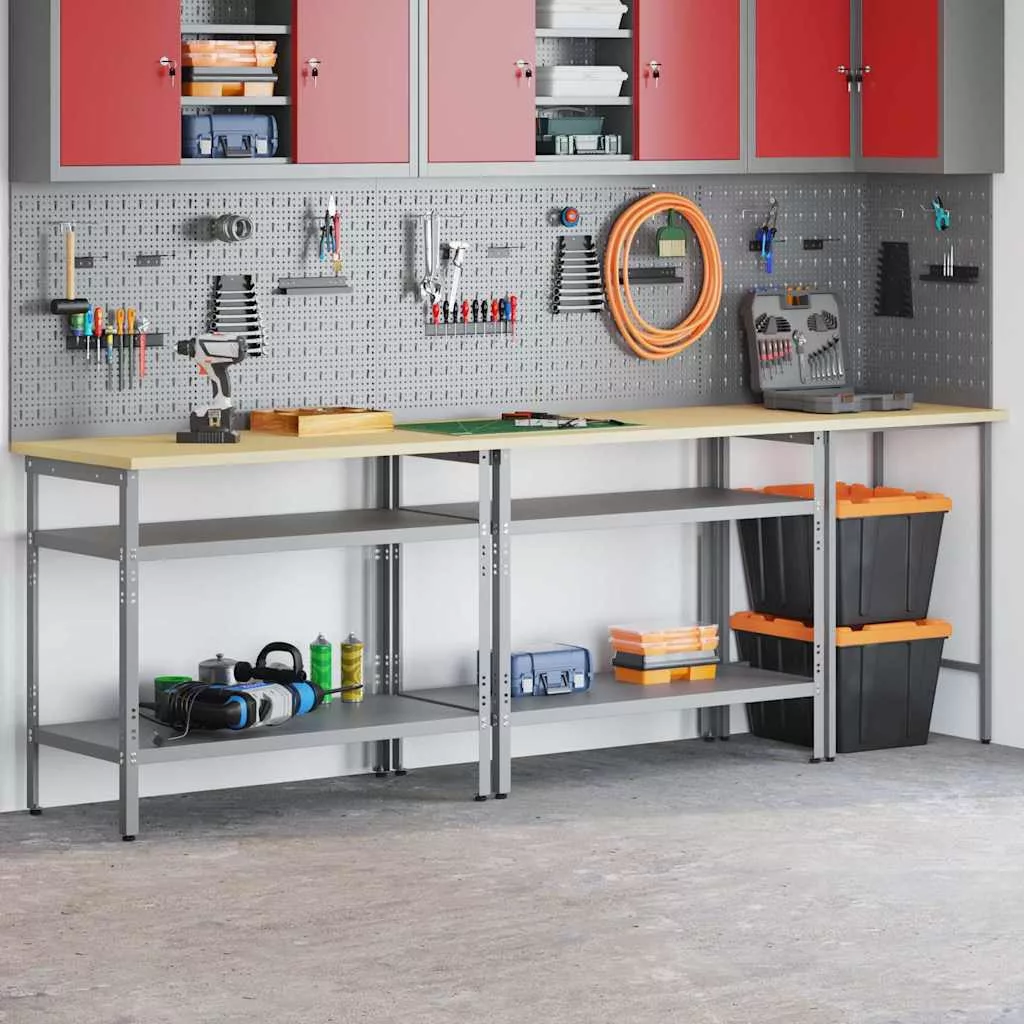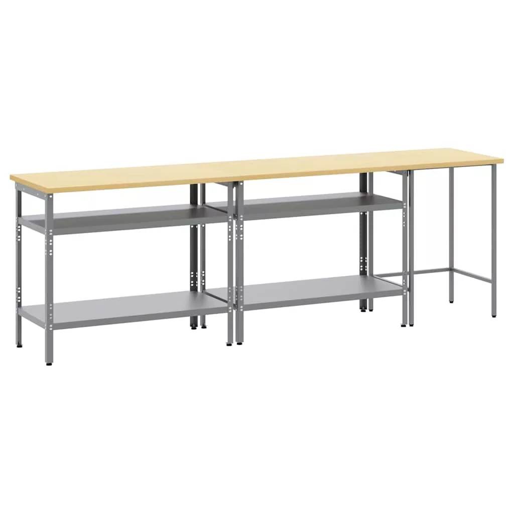 Munkapad készlet polcokkal tárolóval 3 pcs Szürke Acél