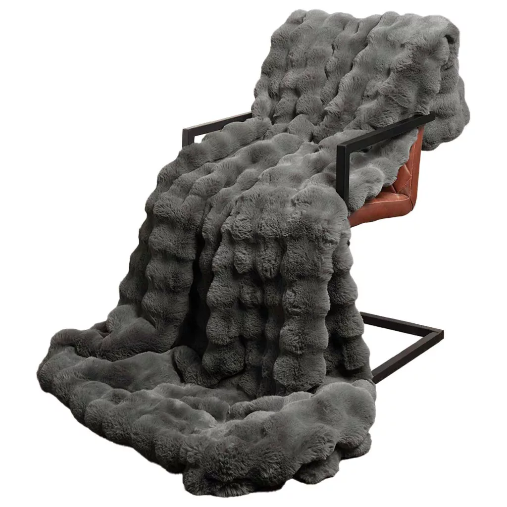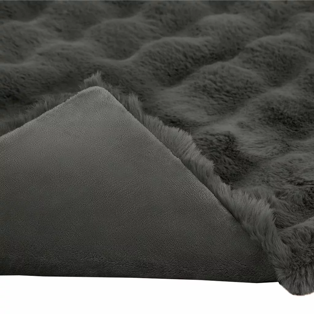 Műnyúl szőrmés takaró Sötétszürke 150 x 220 cm Poliészter