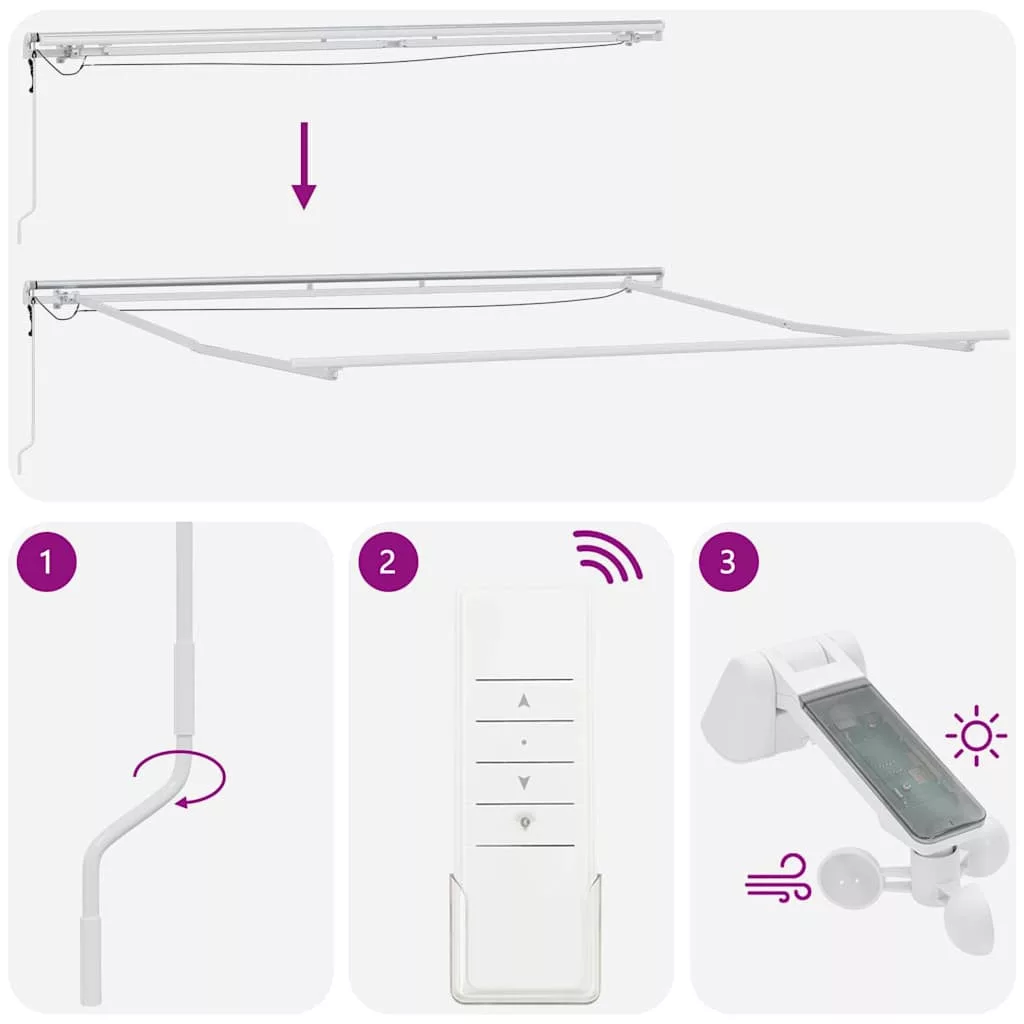 Ez a modern napernyő szuper kültéri használatra való, stílusos és hasznos kiegészítés a kertedhez vagy teraszodhoz. Szép téglalap formájával véd a durva naptól, és nagyon jó megjelenést ad a kültéri helyednek. Az egyszerű dizájnnal rendelkező manuálisan visszahúzható árnyékoló simán illeszkedik a különböző stílusokhoz, így mindenkinek kötelező darab, aki keres egy hűvös, árnyékos menedéket. Fém Felépítés: Kiváló minőségű fémből készült, ez a napernyő tartós, védi a környezeti hatásoktól. Az erős fém váza biztosítja, hogy a szövet feszesen álljon, így mindig hatékony árnyékot ad. Manuálisan Állítható Mechanizmus: A user-friendly manuális rendszerrel könnyen kihúzhatod és elteheted az árnyékolót, így te irányítod a kültéri világítást és hangulatot. UV Álló Szövet: Az UV-álló anyagok védelmet nyújtanak a nap káros hatásai ellen. Élvezd a napfényt anélkül, hogy az UV sugarak miatt aggódnál. Sima Matt Textúra: A matt felület növeli a modern stílust, távol tartja a zavaró tükröződéseket, és elegáns megjelenést ad a kültéri dizájnodnak. Karbantartási Útmutató: Rendszeres meleg vízes tisztítással és közvetlen napfény elkerülésével tarthatod szép állapotban. Erős tisztítószereket ne használj; elég egy nedves ruhával áttörölni, és máris makulátlanul néz ki. A gyermekeket felügyelni kell, hogy ne játsszanak a készülékkel. Tartsa távol a gyerekeket az összeszerelési területtől. Figyelem: Használat előtt figyelmesen olvassa el az utasításokat, és őrizze meg további hivatkozás céljából.
