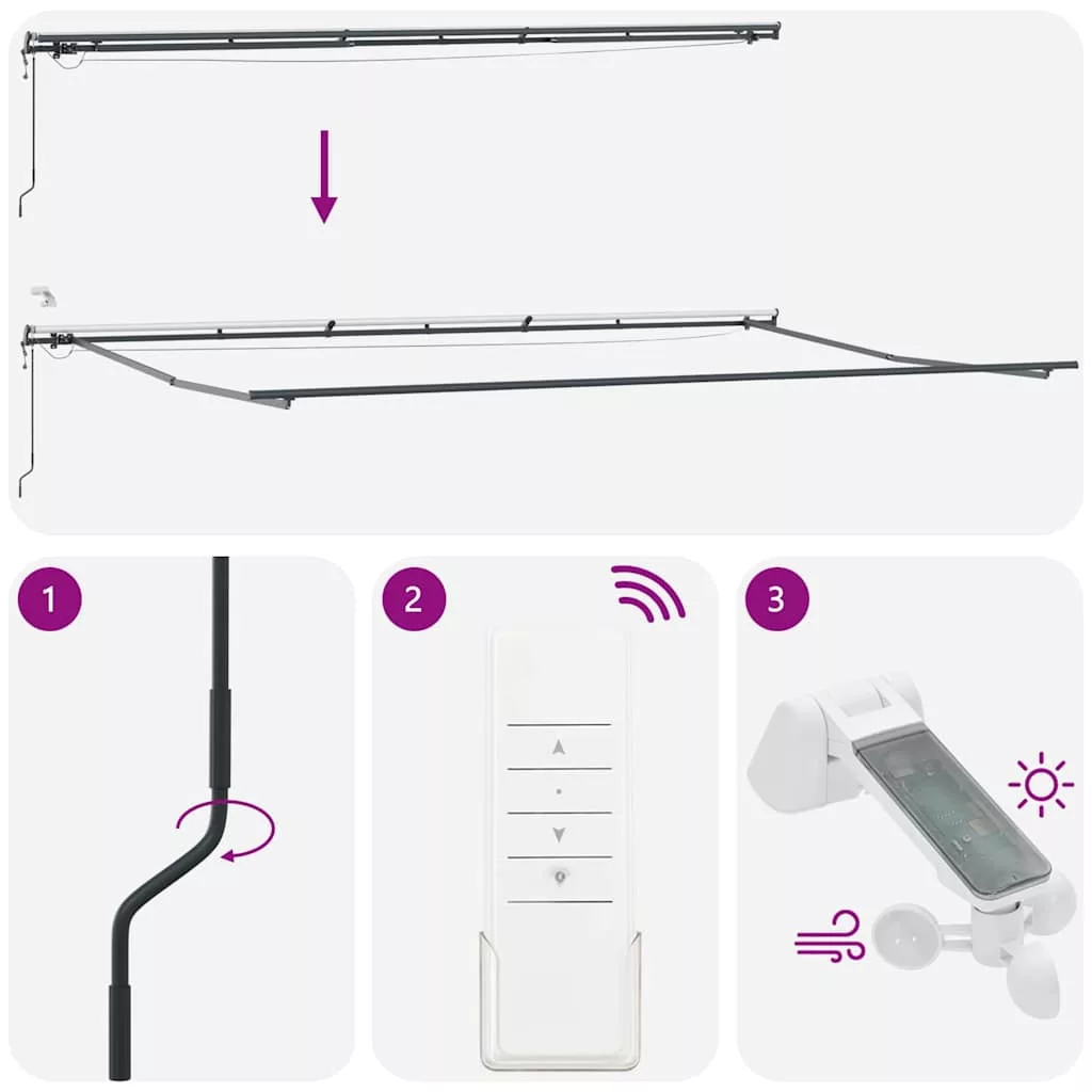 Ez a modern napernyő szuper kültéri használatra való, stílusos és hasznos kiegészítés a kertedhez vagy teraszodhoz. Szép téglalap formájával véd a durva naptól, és nagyon jó megjelenést ad a kültéri helyednek. Az egyszerű dizájnnal rendelkező manuálisan visszahúzható árnyékoló simán illeszkedik a különböző stílusokhoz, így mindenkinek kötelező darab, aki keres egy hűvös, árnyékos menedéket. Fém Felépítés: Kiváló minőségű fémből készült, ez a napernyő tartós, védi a környezeti hatásoktól. Az erős fém váza biztosítja, hogy a szövet feszesen álljon, így mindig hatékony árnyékot ad. Manuálisan Állítható Mechanizmus: A user-friendly manuális rendszerrel könnyen kihúzhatod és elteheted az árnyékolót, így te irányítod a kültéri világítást és hangulatot. UV Álló Szövet: Az UV-álló anyagok védelmet nyújtanak a nap káros hatásai ellen. Élvezd a napfényt anélkül, hogy az UV sugarak miatt aggódnál. Sima Matt Textúra: A matt felület növeli a modern stílust, távol tartja a zavaró tükröződéseket, és elegáns megjelenést ad a kültéri dizájnodnak. Karbantartási Útmutató: Rendszeres meleg vízes tisztítással és közvetlen napfény elkerülésével tarthatod szép állapotban. Erős tisztítószereket ne használj; elég egy nedves ruhával áttörölni, és máris makulátlanul néz ki. A gyermekeket felügyelni kell, hogy ne játsszanak a készülékkel. Tartsa távol a gyerekeket az összeszerelési területtől. Figyelem: Használat előtt figyelmesen olvassa el az utasításokat, és őrizze meg további hivatkozás céljából.