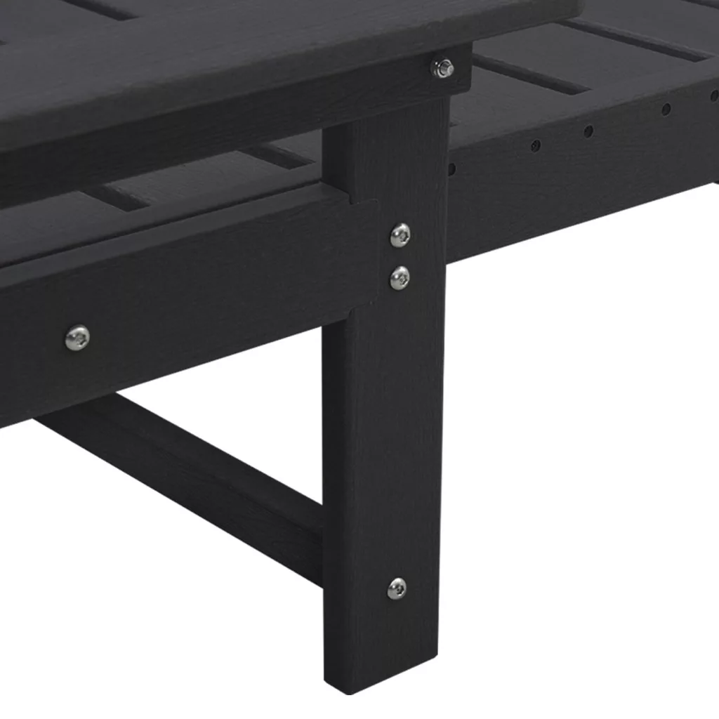 Ez az állítható napozóágy csomag két stílusos darabot tartalmaz, amik a kültéri pihenés szerelmeseinek készültek. Modern megjelenésük és elegáns fekete színük miatt tökéletesek a teraszon vagy a kertben való lazításhoz, ideális napozásra, olvasásra vagy csak úgy üldögélni a délután. Minden nyugágy állítható háttámlával rendelkezik, így könnyedén megtalálhatod a kényelmes szöget olvasás vagy napozás közben. Magas sűrűségű polietilénből (HDPE) készültek, jól bírják az időjárást, és a texturált felület a stílust növeli, biztosítva, hogy sokáig megőrizzék minőségüket minimális karbantartással. A lapos, ergonomikus kartámaszok extra kényelmet nyújtanak, javítva a pihenés élményét akár a medence mellett, akár barátok társaságában. A modern matt befejezés növeli vonzerejüket, és jól illik mindenféle kültéri dekorációhoz, rugalmas választást adva a térhez. Az összeszerelés egyszerű, csupán egy csavarhúzóra és egy segítőre van szükséged, hogy gyorsan fel tudd állítani őket, így gondtalanul élvezheted a nyugágyakat.