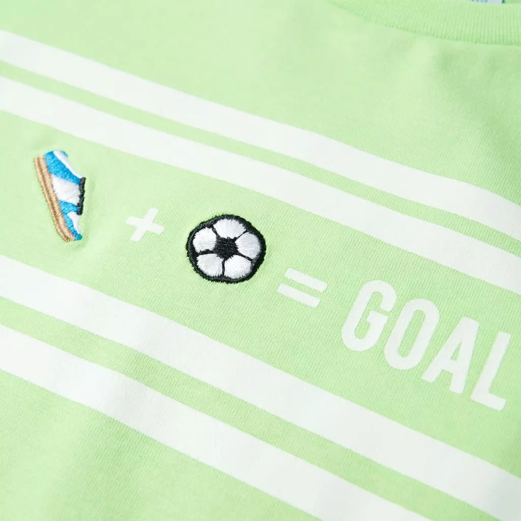 Gyerekruha-kínálatunk a megfizethető, kiváló minőségű és tartós mindennapi viseletet képviseli 1,5 és 10 év közötti gyermekek számára. Kínálatunkban kabátok, pulóverek, ingek és még sok más található változatos stílusban, méretben és színben. A piac magas minőségi színvonalát követve kiváló minőségű anyagokat és fejlett gyártási technikákat alkalmazunk. Ez a rövid ujjú gyerekpóló kerek nyakkivágású és egyenes szabású. A gyerekpóló mellkasán vízszintes csíkok vannak. A minta egy futballcipőből, egy focilabdából és a „GOAL” szóból áll. A gyerekeknek szánt póló pamutból, poliészterből és elasztánból készült a puha és kényelmes tapintás érdekében. Fontos: A képen látható mérettáblázat az 1,5-10 éves gyermekek méretét ábrázolja, lefedi a magasságot, a mellkast, a derekat és a csípőt. Könnyedén megtalálhatja gyermeke számára a megfelelő méretet.