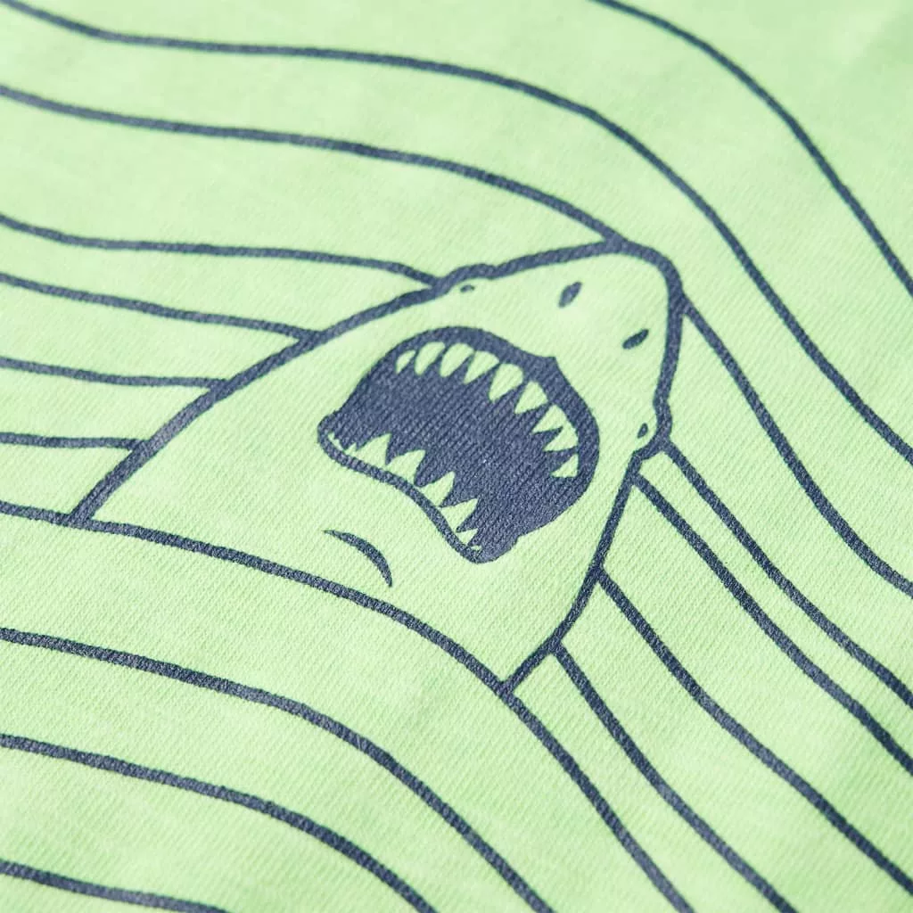 Gyerekruha-kínálatunk a megfizethető, kiváló minőségű és tartós mindennapi viseletet képviseli 1,5 és 10 év közötti gyermekek számára. Kínálatunkban kabátok, pulóverek, ingek és még sok más található változatos stílusban, méretben és színben. A piac magas minőségi színvonalát követve kiváló minőségű anyagokat és fejlett gyártási technikákat alkalmazunk. Ez a rövid ujjú gyerekpóló kerek nyakkivágású és egyenes szabású. A gyerekpólót egy tengerben úszó cápa díszíti. A gyerekeknek szánt póló pamutból, poliészterből és elasztánból készült a puha és kényelmes tapintás érdekében. Fontos: A képen látható mérettáblázat az 1,5-10 éves gyermekek méretét ábrázolja, lefedi a magasságot, a mellkast, a derekat és a csípőt. Könnyedén megtalálhatja gyermeke számára a megfelelő méretet.