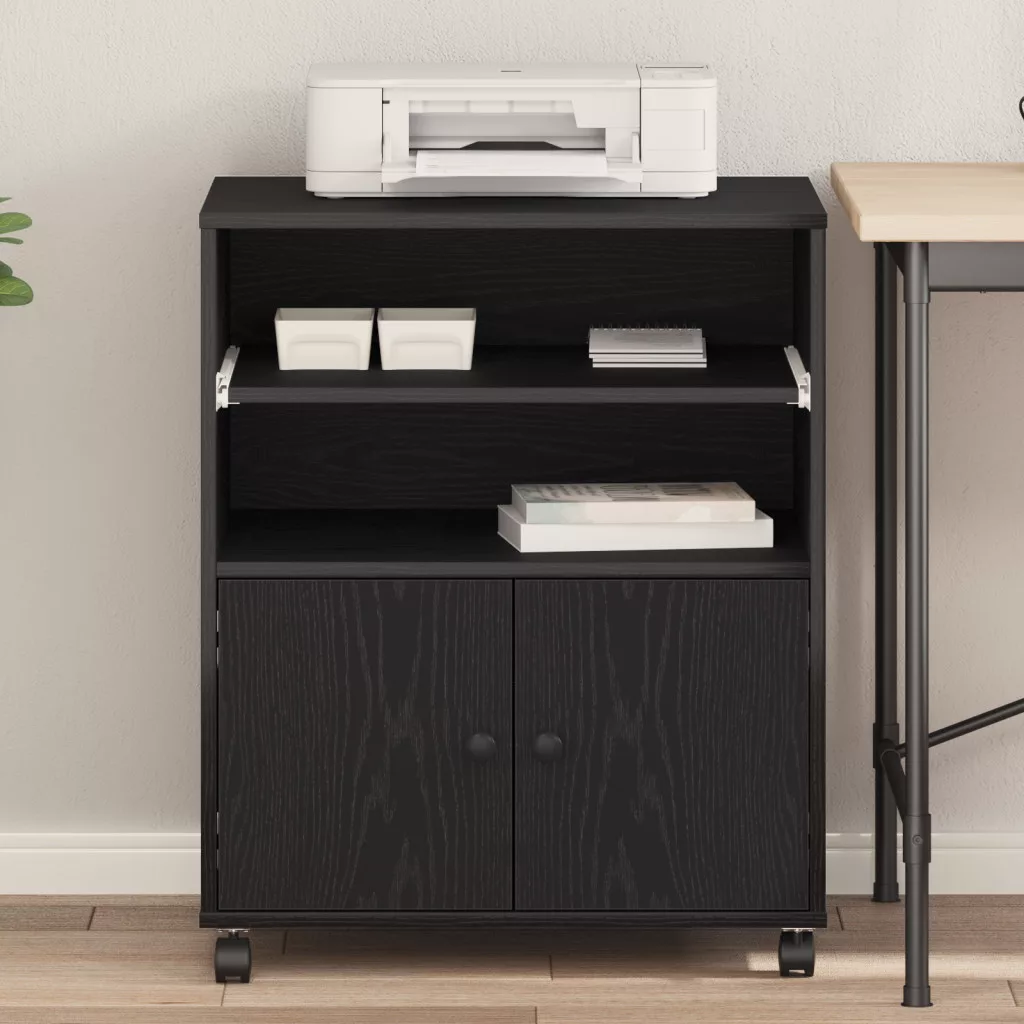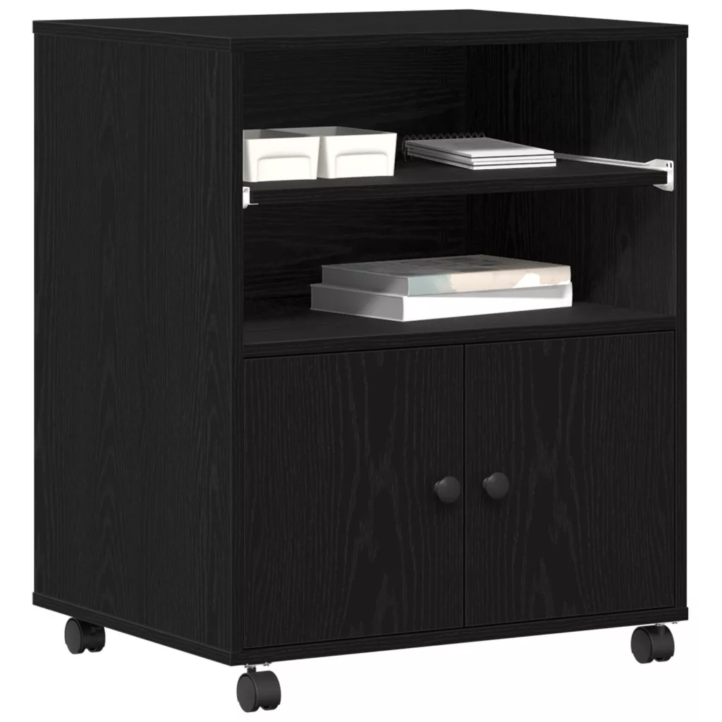 Nyomtatóállvány Kerekekkel Fekete Tölgy 60x48x74 cm
