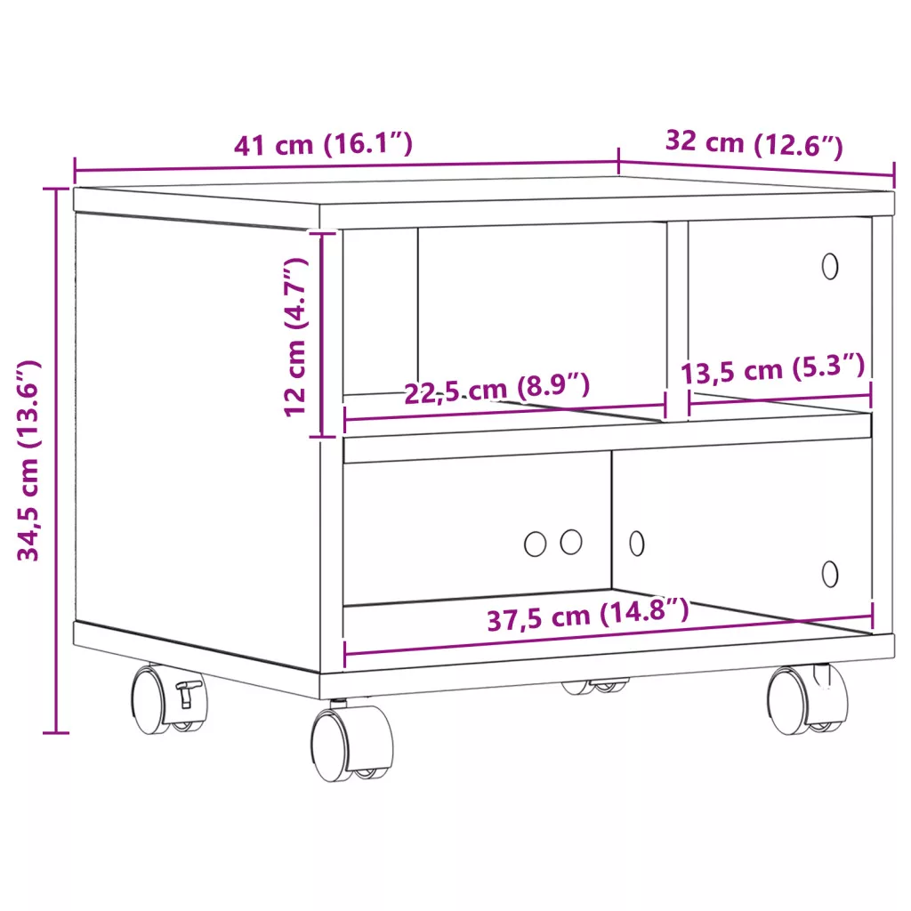 Nyomtatóállvány kerekekkel - Művészi tölgy 41x32x33,5 cm
