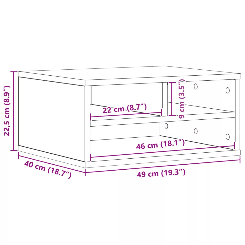 Ez a fekete tölgy kompakt nyomtató állvány stílusos és praktikus megoldás irodákhoz és tanulószobákhoz. Segít rendben tartani a nyomtatókat és a kiegészítőket, így a tered tiszta és rendezett marad, miközben könnyen elérheted az elektronikus eszközeidet. Helytakarékosság: Tökéletes szűk helyekhez, ez az állvány maximális helyet biztosít anélkül, hogy a stílust feláldozná, így szuper választás otthoni irodákhoz. Nyitott Polcok: Három nyitott tároló polccal könnyen elérheted a nyomtatódat és a fontos irodaszereidet, gyorsítva a munkafolyamatot. Modern Stílus: A matt fekete tölgy dizájn trendi érintést ad, így jól passzol a különböző stílusokhoz, miközben harmonizál a többi bútoroddal. Tartós Anyag: Szerelt fából készült, ez az állvány szilárd és tartós, akár 20 kg-ot is elbír zökkenőmentesen. Egyszerű Karbantartás: Csak töröld le egy nedves ruhával, hogy frissen tartsd; kerüld az erős tisztítószereket, amik megkarcolhatják a felületet.