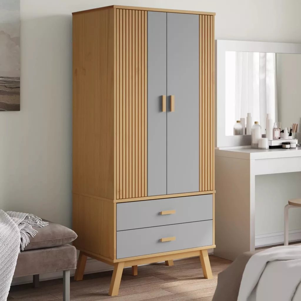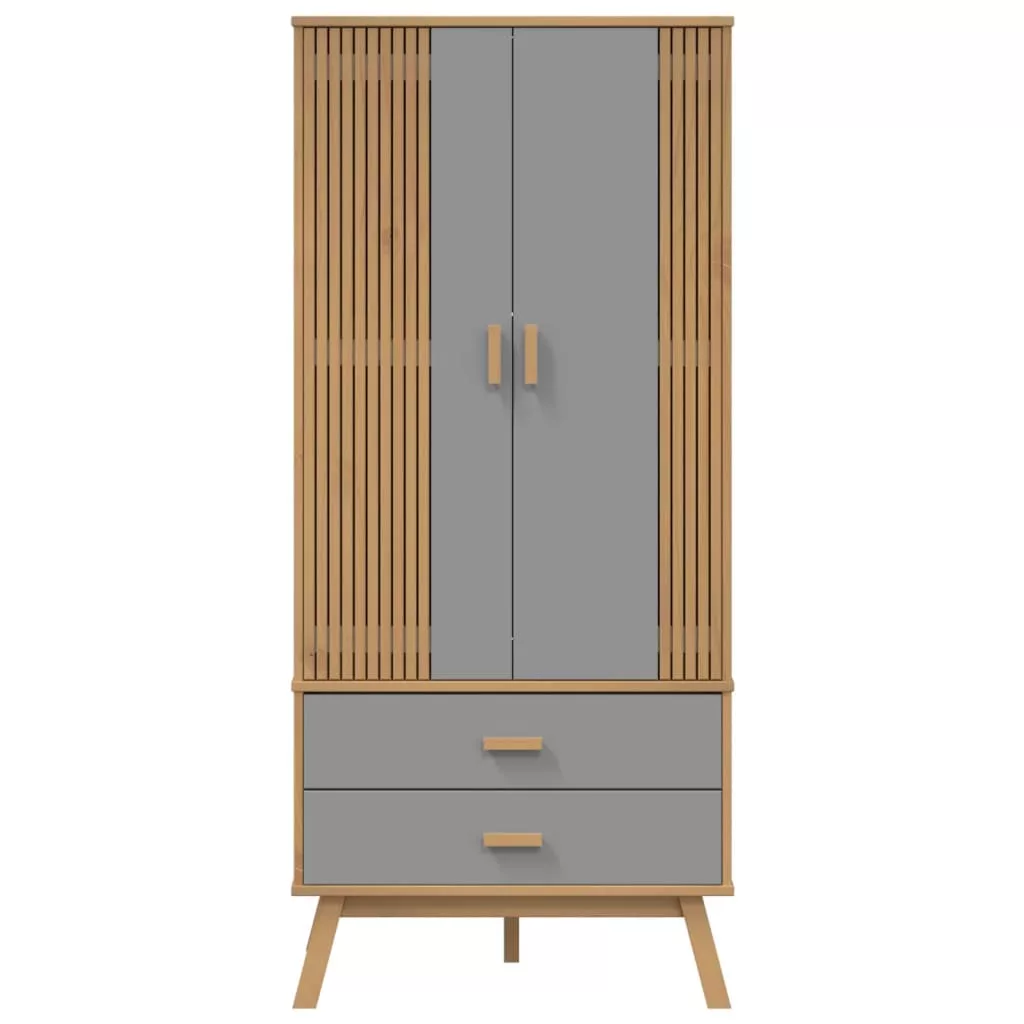 OLDEN szürke és barna tömör fenyőfa gardrób 76,5 x 53 x 172 cm