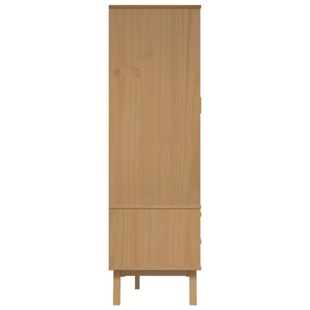 Ez a klasszikus, skandináv dizájnnal rendelkező, fából készült ruhásszekrény bőséges tárolóhelyet biztosít ruhái és kiegészítői rendezett tárolásához. Tömör fenyőfa: A tömör fenyőfa egy gyönyörű természetes anyag. A fenyőfa egyenes erezetű, a csomók pedig jellegzetes, rusztikus megjelenést biztosítanak az anyagnak. A tömör fenyőfából készült tárolószekrény strapabíró és masszív.Bőséges tárolóhely: Ez a szekrény 2 fiókkal és 1 nagy, ajtókkal ellátott rekesszel rendelkezik, így bőséges helyet biztosít mind a hosszabb, mind az összehajtogatott ruhák vagy kiegészítők, például pulóverek, farmerek, sapkák, kézitáskák stb. számára.Fa fogantyúk: A ruhásszekrényhez fa fogantyúk tartoznak, amelyek megkönnyítik a szekrény kinyitását és zárását, miközben tovább növelik a szépségét.Fa lábak: A fa lábak természetes és kellemes megjelenést kölcsönöznek a ruhásszekrénynek, miközben biztosítják a stabilitást. Bármilyen környezetbe illeni fog. Figyelem:A felborulás elkerülése érdekében ezt a terméket a mellékelt fali rögzítőeszközzel kell használni.