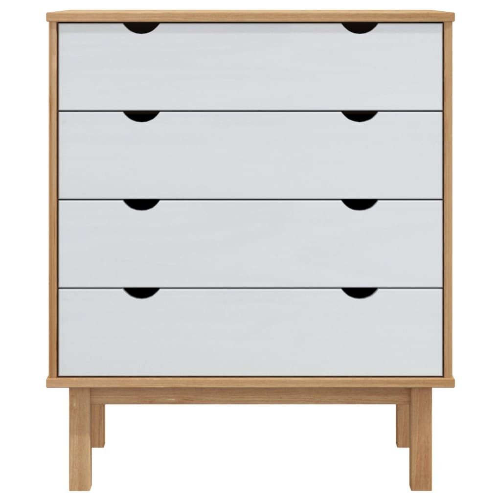 OTTA barna-fehér tömör fenyőfa fiókos szekrény 76,5x39,5x90 cm