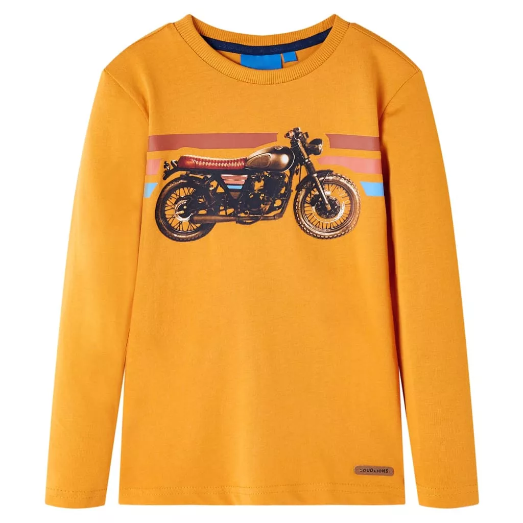 Gyerekruha-kínálatunk a megfizethető, kiváló minőségű és tartós mindennapi viseletet képviseli 1,5 és 10 év közötti gyermekek számára. Kínálatunkban kabátok, pulóverek, ingek és még sok más található változatos stílusban, méretben és színben. A piac magas minőségi színvonalát követve kiváló minőségű anyagokat és fejlett gyártási technikákat alkalmazunk. Ez a gyerek póló hosszú ujjú, kerek nyakkivágással és egyenes modellel rendelkezik. Ezen az okkersárga pólón egy motorkerékpár látható. A hosszú ujjú gyermekpóló 100% pamutból készült, amelyet szilikonos és enzimes mosással kezeltek a puha és kényelmes tapintás érdekében. Fontos: A képen látható mérettáblázat az 1,5-10 éves gyermekek méretét ábrázolja, lefedi a magasságot, a mellkast, a derekat és a csípőt. Könnyedén megtalálhatja gyermeke számára a megfelelő méretet.