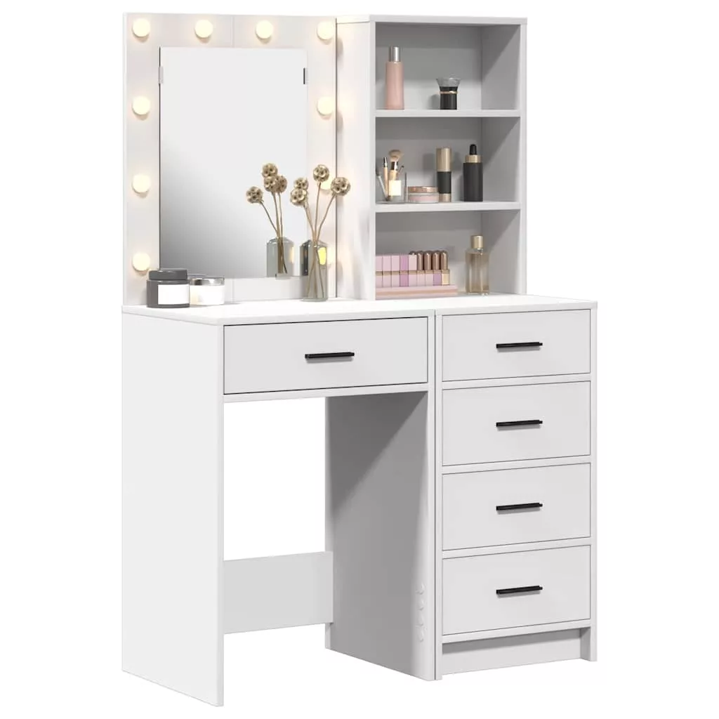 Ez a Modern Sminkasztal trendi érintést ad bármely hálószobának, ötvözi a szuper megjelenést a praktikus funkciókkal. Éles vonalai és minimális extra részletei miatt tökéletesen illeszkedik a modern dekorációhoz, miközben saját helyet biztosít a sminkednek és kiegészítőknek. Téglalap alakja friss nézőpontot ad a minimalista stílusnak, így bármilyen belső dizájnhoz passzol, az urbánus chic-től az egyszerű eleganciáig. Az erős, szerelt fa anyag tartós, de elég könnyű ahhoz, hogy ne zsúfoljon el kisebb helyeket. Jól tervezett, rengeteg tárolóhellyel rendelkezik, amit napi sminkelésre vagy készülődésre használhatsz. A rejtett LED világítás pedig segít a sminkelésre koncentrálni. Szerelt Fa Összetétel A sminkasztal főként kiváló minőségű szerelt fából készült, ami szép egyensúlyt teremt a megjelenés és az erő között. Ez az anyag nem torzul el vagy repedezik, így megőrzi a formáját és funkcióját, még ha sokat használod is. A sima felület elegáns és modern érzetet ad. Befoglalott Komponensek Rengeteget lehet tárolni a polcokon és fiókokban, amik szintén szerelt fából vannak, így rendezetten tarthatod a dolgaidat. A beépített LED világítás állítható fényt ad, így jól látsz mindent sminkelés közben. Innovatív Dizájn Elegáns téglalap alakjával és minimalista stílusával ez a sminkasztal annyira praktikus, mint divatos. Tiszta és rendben tartja a sminkfelszerelésedet, és megmutatja a kedvenc dolgaidat, igazán középponttá téve a szobádban. Megfelelő Használat A szobákba, különösen a hálószobákba tervezve, ez a sminkasztal tökéletes minden sminkes szükséglethez, segítve a napi készülődést. Szilárd felépítése garantálja a megbízhatóságot, így elfoglalt embereknek ideális, akik rendezett területet akarnak stílusos felkészüléshez. Karbantartási Tippek Egy kis törődés segít, hogy a sminkasztalod mindig szép maradjon; csak egy puha, száraz ruhával töröld le. Kerüld a vizet és a durva tisztítószereket, mert tönkretehetik a felületet. A rendszeres portörlés és a bútorszpráj használata segít megőrizni a csillogó, elegáns megjelenést évekig. Kérjük, vegye figyelembe, hogy csak tanúsított DC 5V bemenetet használjon. A magasabb feszültség túlmelegedést okozhat, és károsíthatja a készüléket, valamint túlhevülés és tűz kockázatát jelentheti. Ne csatlakoztassa ezt a terméket semmilyen más tápegységhez, mint amit a kézikönyvben, a névtáblán vagy a vidaXL kifejezetten ajánlott. Ezt a készüléket nem használhatják 14 évesnél fiatalabb gyermekek, valamint csökkent fizikai, érzékszervi vagy mentális képességekkel rendelkező személyek, vagy elektronikai eszközök használatában tapasztalatlan vagy tudás nélküli személyek. Az elektromosság veszélyes. A nem megfelelő telepítés, használat vagy módosítás (egyedi alkatrészek cseréje) a készülék károsodásához vezethet, áramütést és veszélyt okozva a felhasználónak. Ne működtesse ezt a terméket robbanásveszélyes atmoszférában, például gyúlékony folyadékok, gázok és por jelenlétében, vagy 50 Celsius foknál magasabb hőmérsékleten. Ne kapcsolja be a terméket, ha a csatlakozó kábel vagy tápegység láthatóan sérült. Ha a lámpa külső hajlékony kábele vagy vezetékje sérült, azt kizárólag a gyártó vagy annak szervizügynöke, illetve hasonló képesítéssel rendelkező személy cserélheti ki, hogy elkerülje a veszélyt. A telepítés és karbantartás alatt kapcsolja ki az áramot. Győződjön meg arról, hogy a fényforrások lehűltek. Ennek a lámpatestnek a fényforrása nem cserélhető; ha a fényforrás elérte élettartamának végét, az egész lámpát ki kell cserélni. Csak belső használatra, ne használja kültéren.