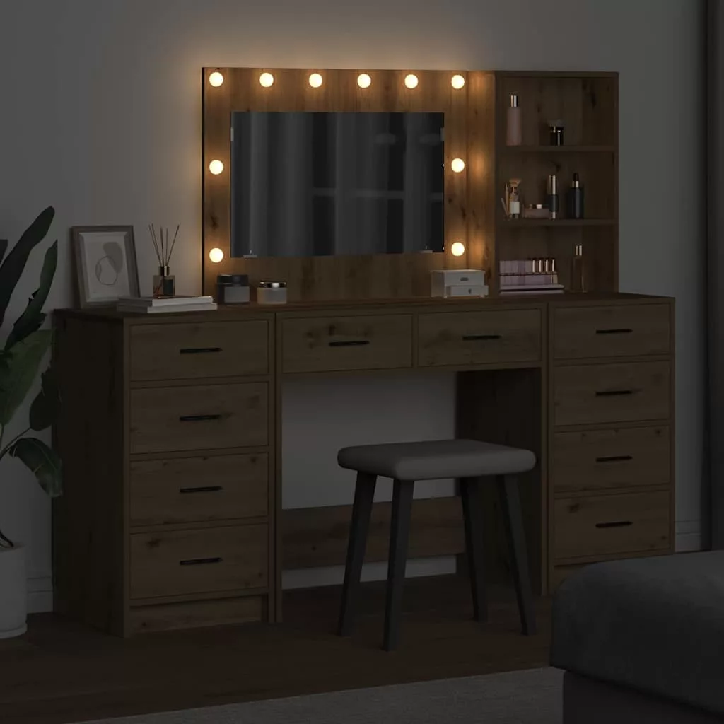 Öltözködőasztal tükör lámpákkal 3 pcs Artisan tölgy Faanyag
