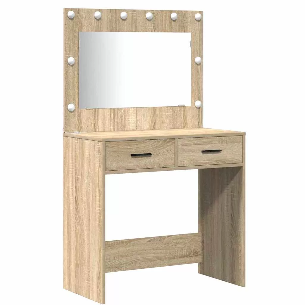 Öltözködőasztal tükör lámpákkal fiókkal 2 pcs Barna Faanyag