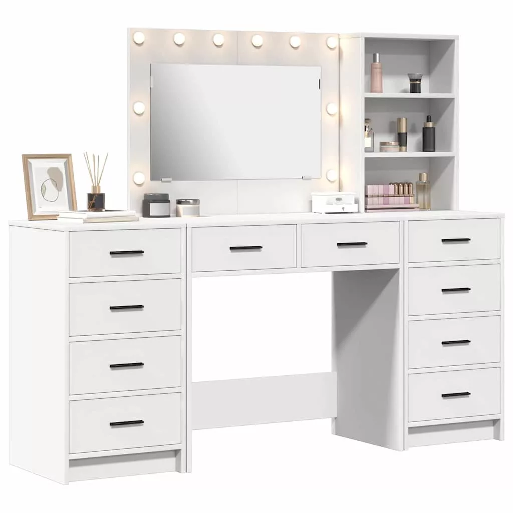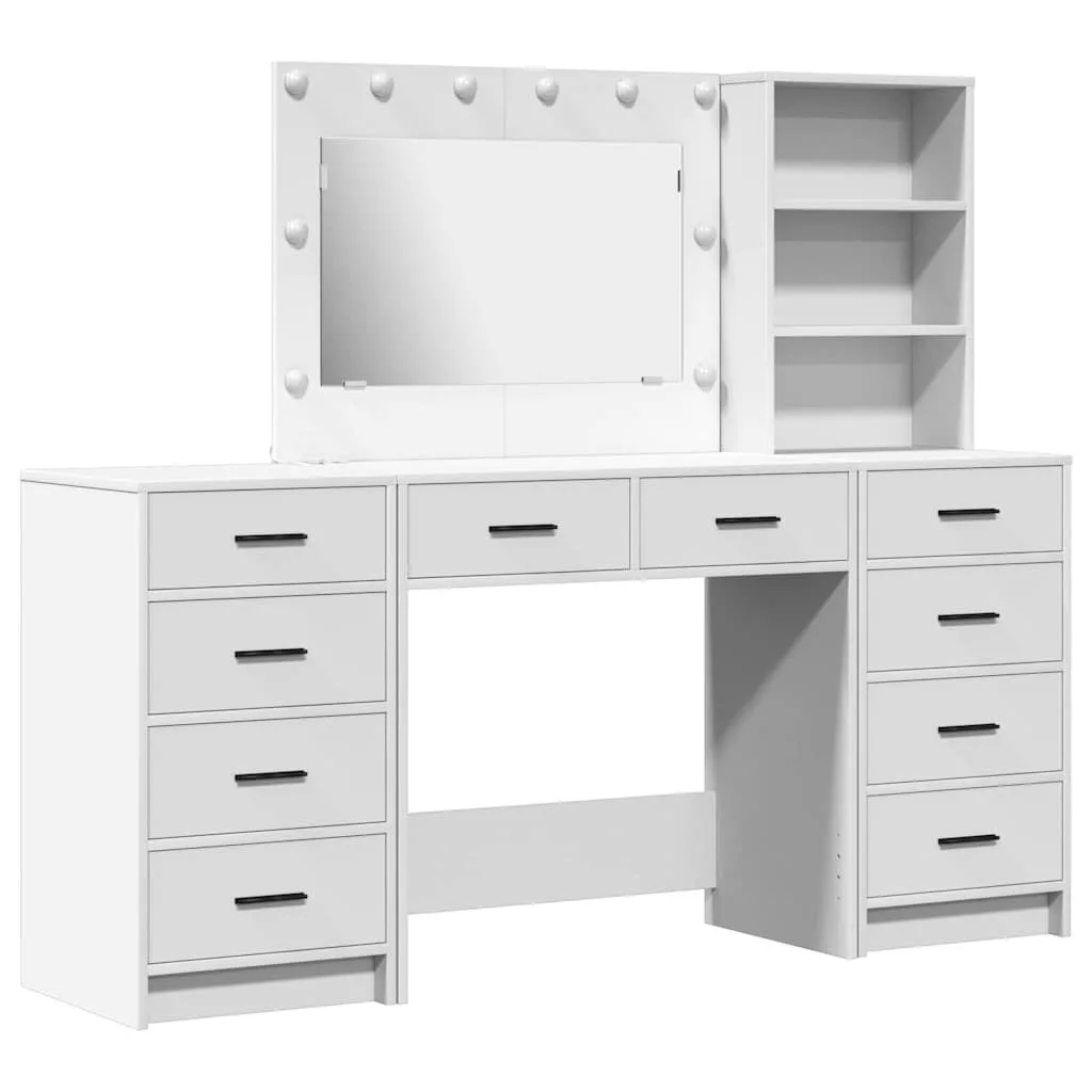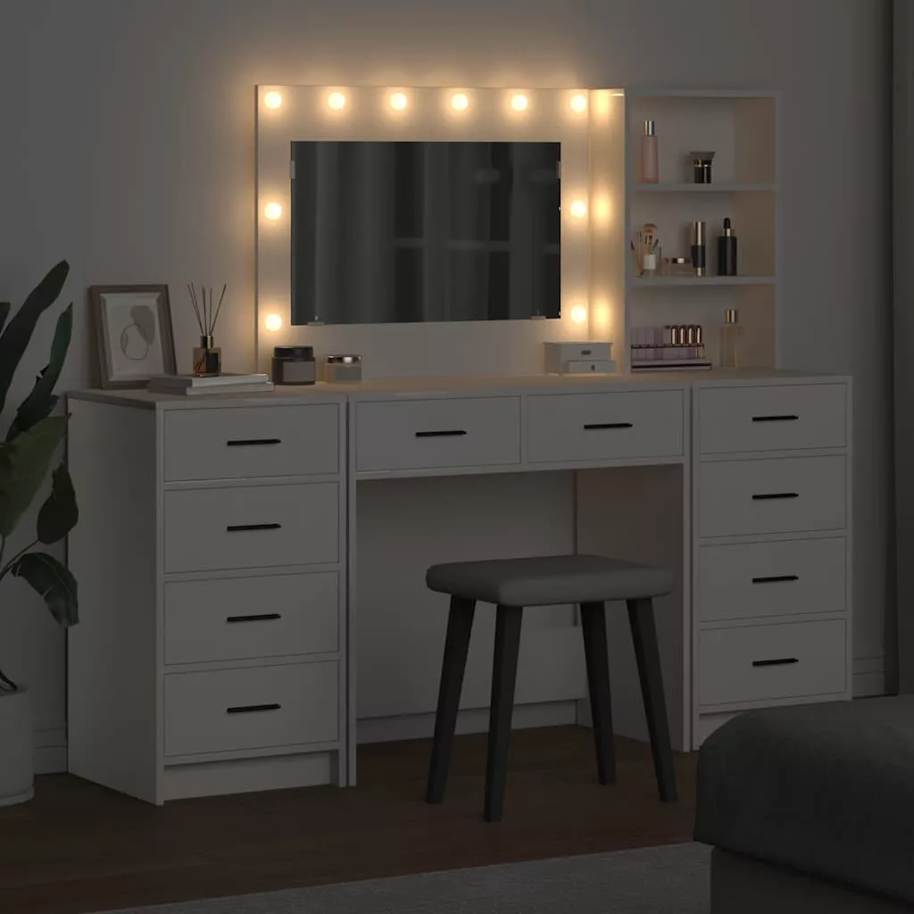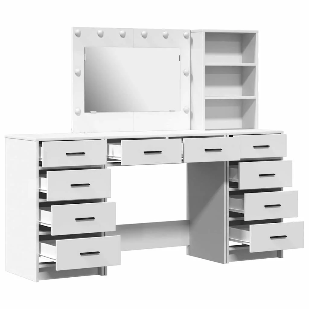 Öltözködőasztal tükör lámpákkal fiókkal 3 pcs Fehér Faanyag