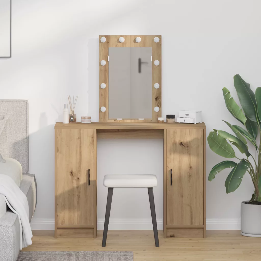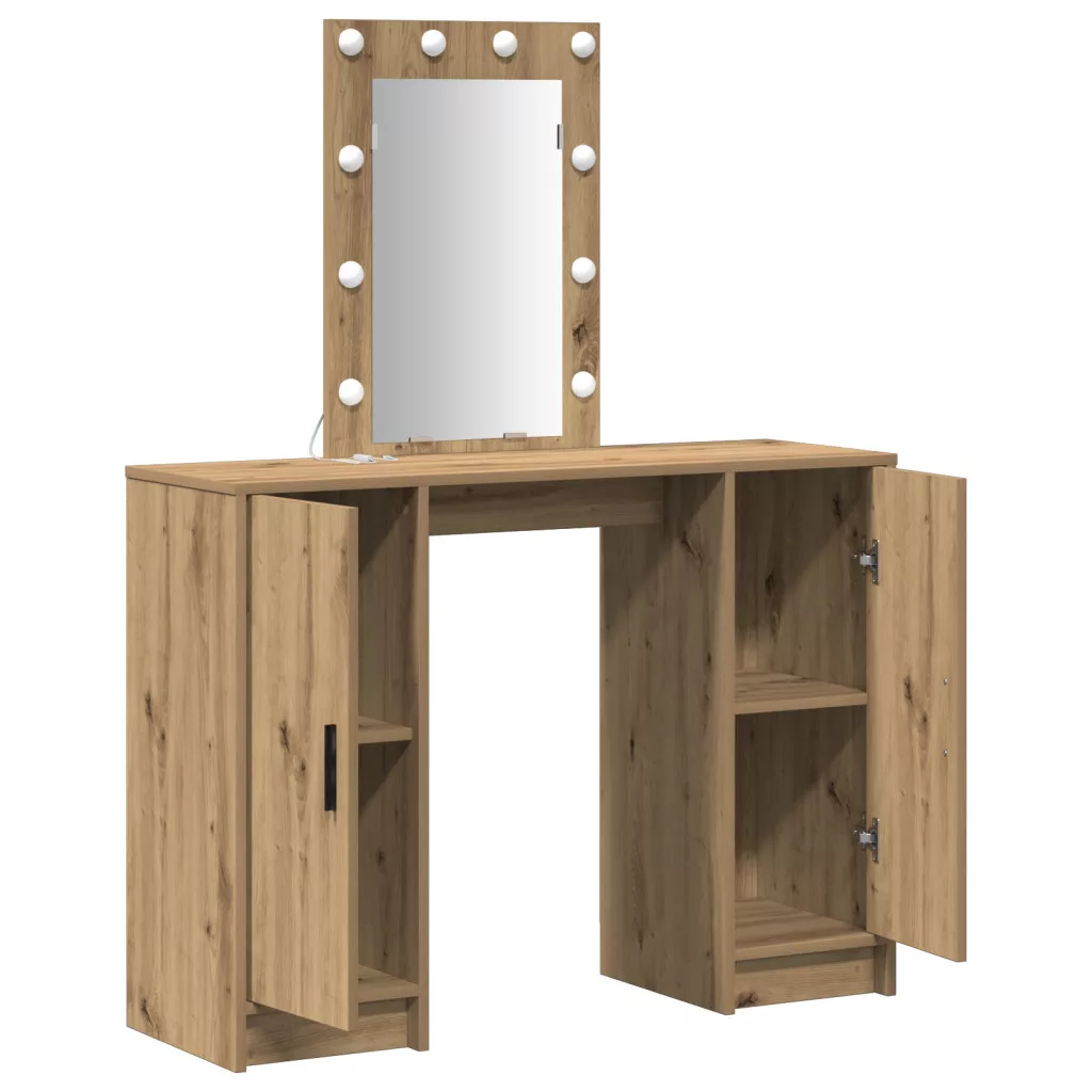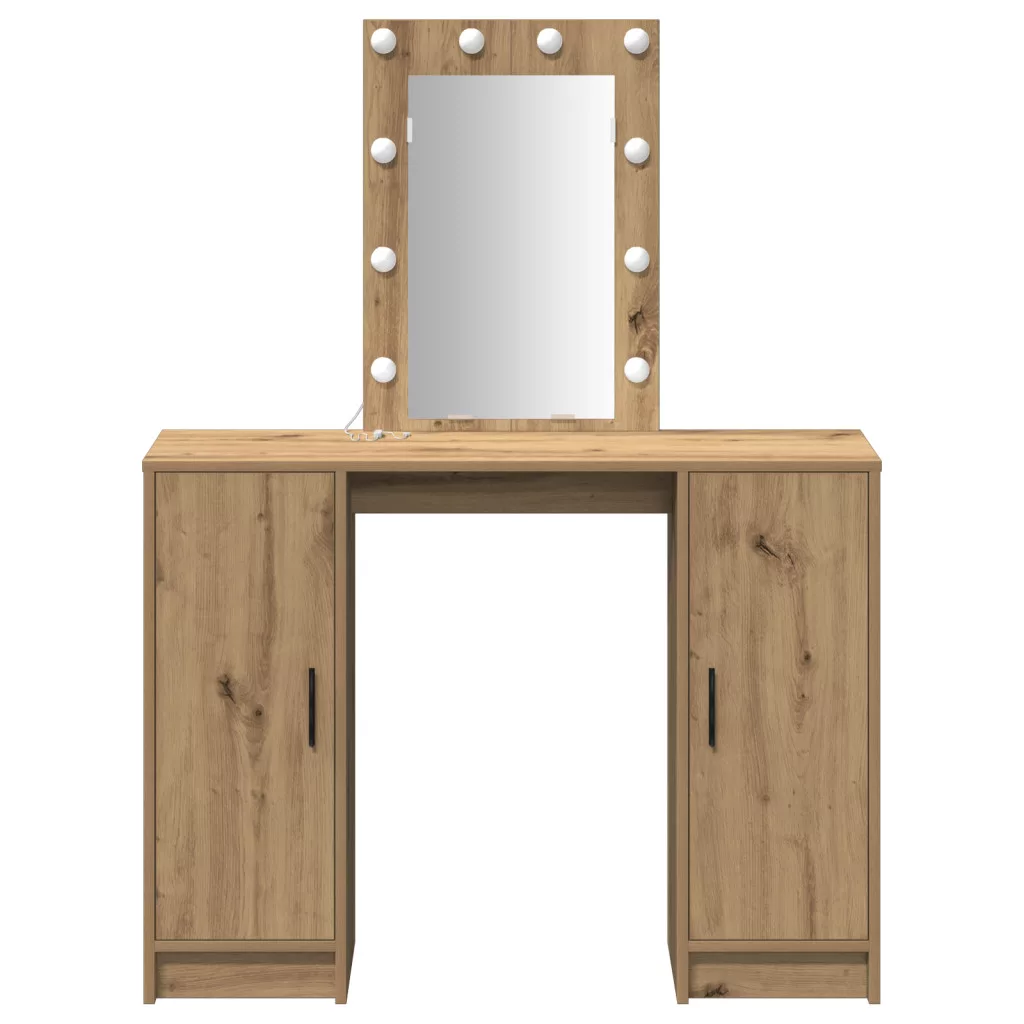 Öltözőasztal LED lámpákkal Kézműves Tölgy 102x33x135 cm