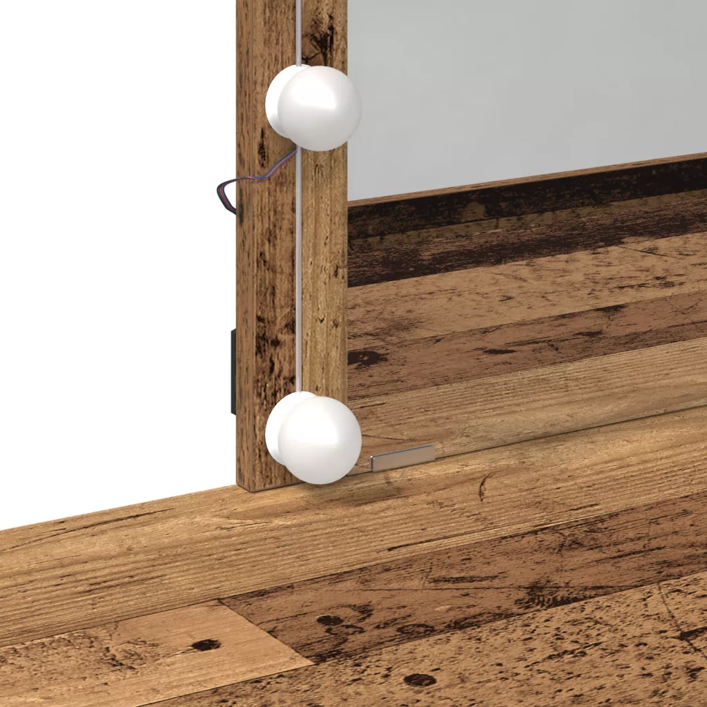 Öltöztetőasztal Tükrökkel és LED Fényekkel Régi Fa Műszaki Fa