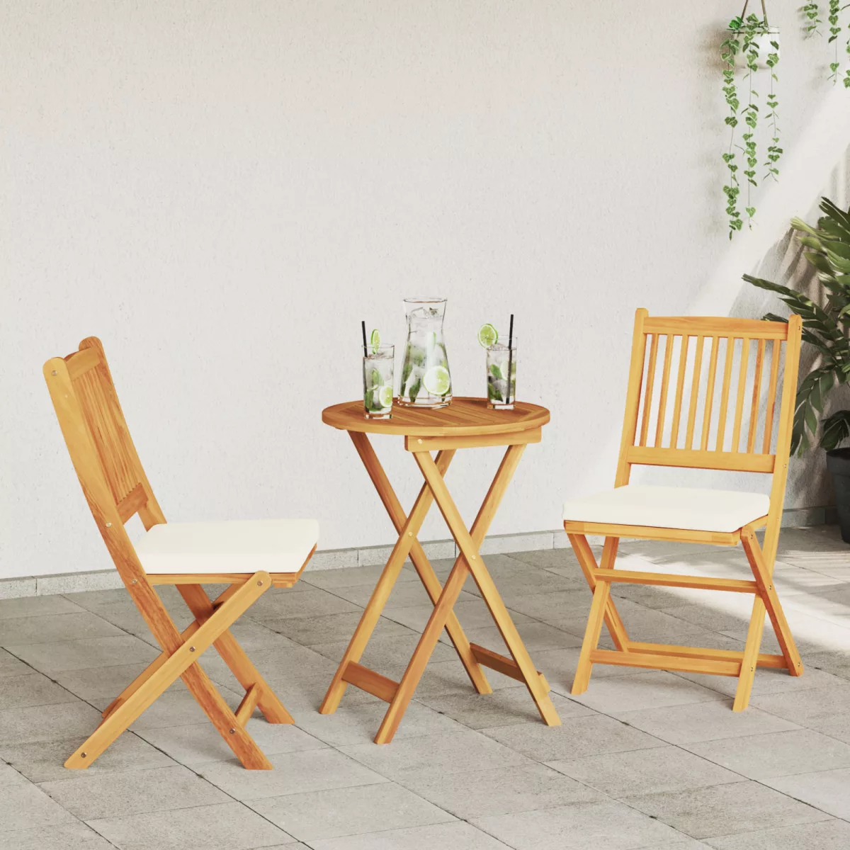 Ez az összecsukható kültéri szék szett maximális kényelmet és praktikumot kínál, remekül illik az erkélyedhez vagy más kültéri helyekhez. Modern megjelenésével és természetes fából készült, nemcsak kényelmet ad, hanem feldobja a kültéri stílusodat is, tökéletes a könyv olvasásához vagy a napsütésben való evéshez. Az összecsukható design miatt a tárolás gyerekjáték, tökéletes nyomasztó helyzetben. Minden székhez kényelmes hab ülőpárna tartozik, ami támaszt ad a kinti mulatozások során. Masszív fa kerettel készült, ezek a székek akár 150 kg-ot is bírnak, garantálva a hosszú élettartamot. UV-álló anyagból készültek, jól bírják a napfényt, megtartva a színüket évekig. Remek nyári választás, ez a szék szett stílust és funkciót hoz bármely kültéri helyszínre.