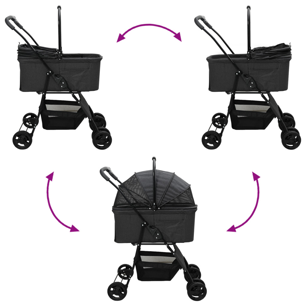 Összecsukható háziállat babakocsi Fekete 81 x 47 x 99 cm