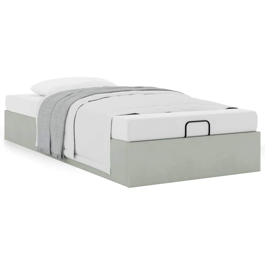 Ottomán ágykeret matrac nélkül Világosszürke 100x200 cm bársony
