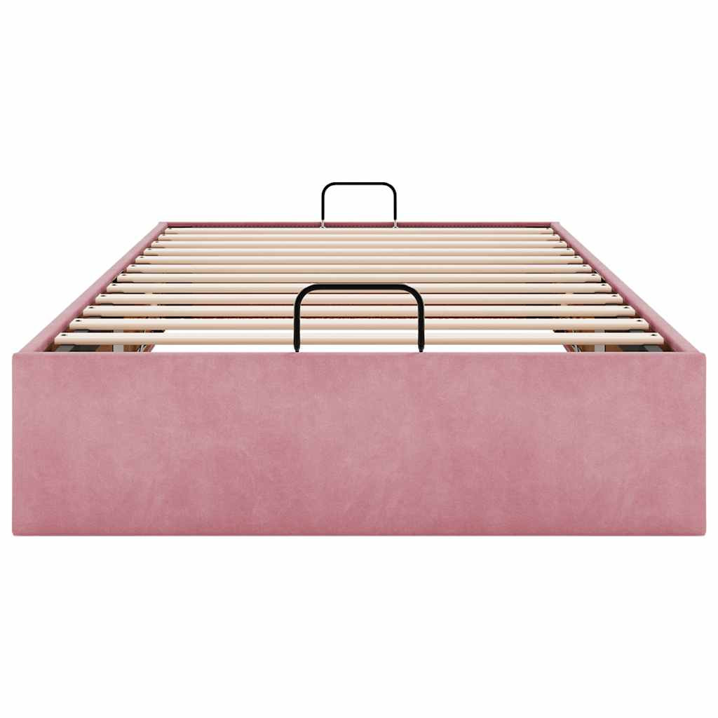 Ottomán ágykeret matrac nélkül rózsaszín 100x200 cm bársony