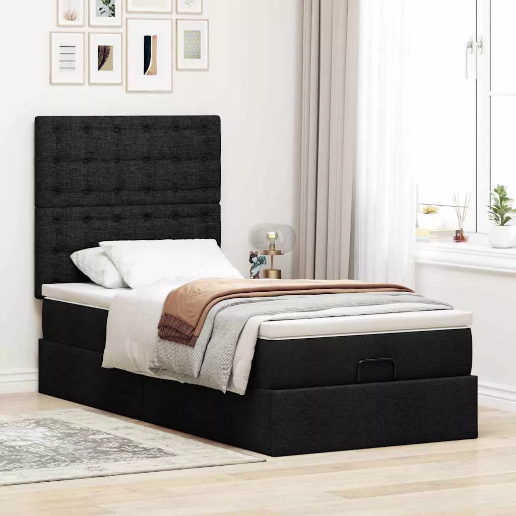 Ottomán ágykeret matraccal fekete 100x200cm szövet