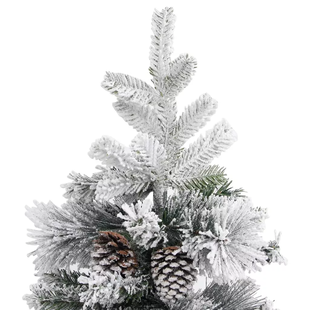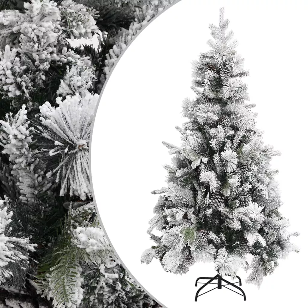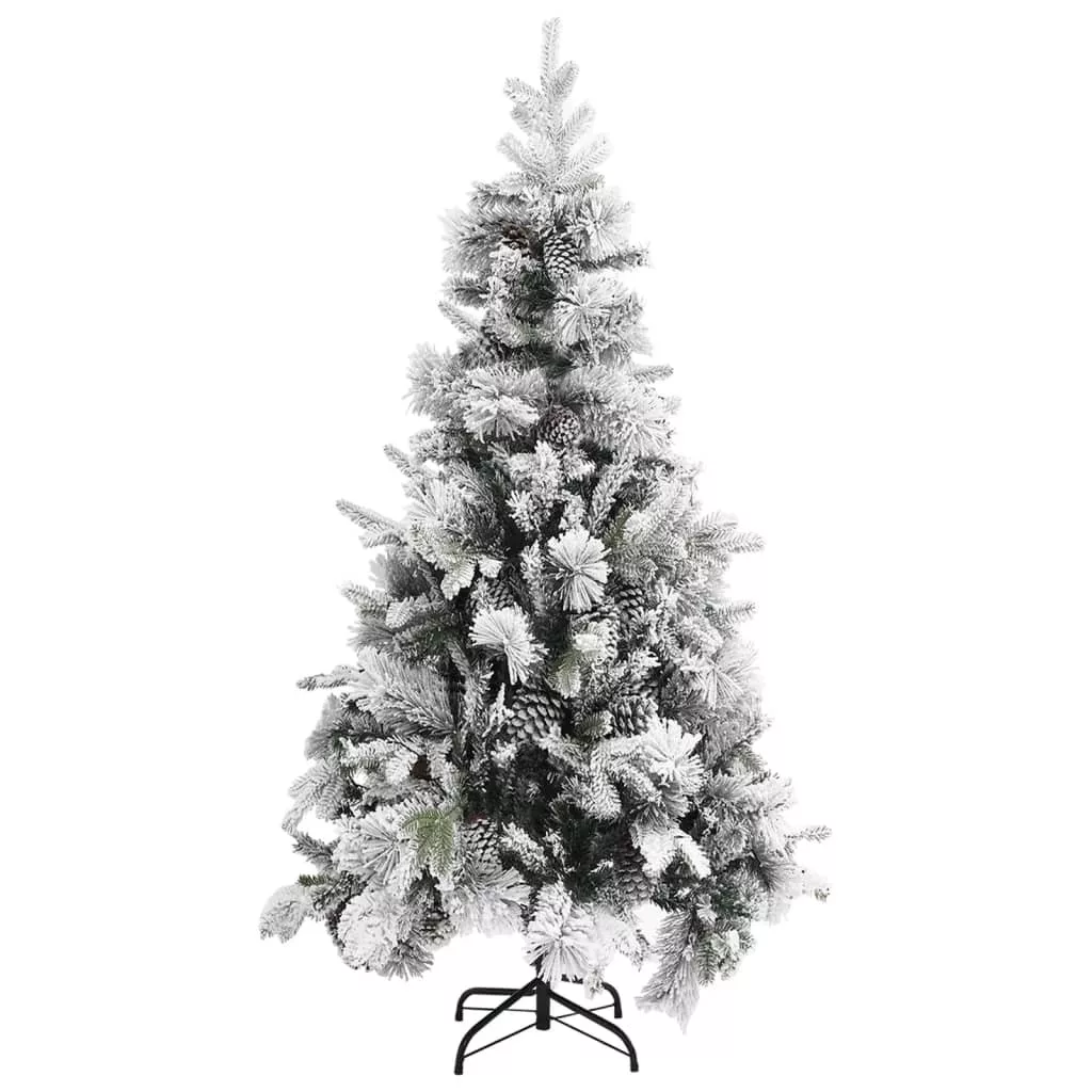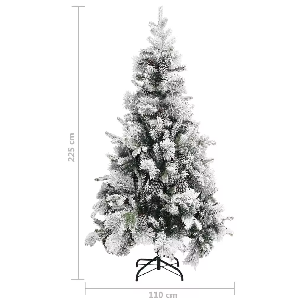PVC/PE karácsonyfa pelyhes hóval és tobozokkal 225 cm