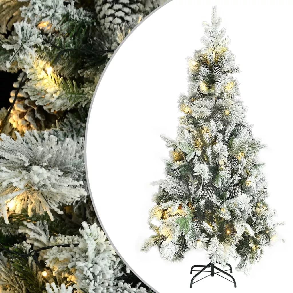 PVC és PE megvilágított karácsonyfa hóval/fenyőtobozzal 225 cm