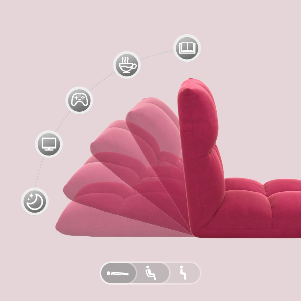 Ez a modern padló szék remekül ötvözi a stílust és a praktikusságot, így egy menő bútordarabot kaptunk, amely minden szobához illik. Letisztult vonalaival és modern dizájnjával egy igazán figyelemfelkeltő elem bármely térben. Az állítható funkcióinak köszönhetően a szék a felhasználó igényeihez igazodik, akárcsak olvasáshoz, játékhoz vagy pihenéshez. Bársony kárpit: A luxus bársonyos anyag puha és kényelmes ülést biztosít. A bársony elegáns megjelenése és meleg tapintása miatt népszerű választás, még laza környezetben is. Erős fém váz: A tartós fém váz stabilitást és megbízhatóságot biztosít, így sokáig kitart. A kombinációja a bársonyos kényelemmel megőrzi az elegáns megjelenést, míg a robusztus anyag hatásos és prémium érzést nyújt. Állítható háttámla: Az 5 állásos háttámla lehetővé teszi, hogy mindenki megtalálja a saját kényelmes pozícióját az olvasástól a relaxálásig. Könnyen állítható, így mindenki megtalálja a saját komfortzónáját. Összecsukható kialakítás: Mivel összecsukható, a padló szék tökéletes helytakarékos megoldás bármely otthonban. A szék elrejthető, amikor nincs szükség rá, így remek választás kisebb lakóterekhez vagy multifunkcionalitást igénylő helyiségekhez. Egyszerű karbantartás: A tisztítása pofon egyszerű - egy száraz ruhával letörölve a por eltávolítható, így a szék mindig vonzó marad. A rendszeres tisztítással megtarthatod színes fókuszukat a lakás dekorjában.