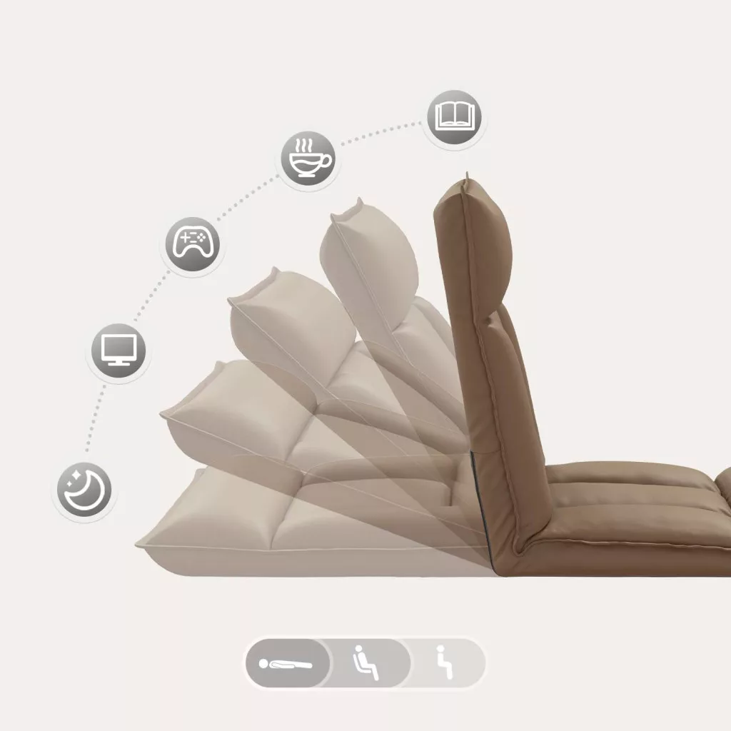 Ez a modern padló szék a kortárs stílust hozza el, akit érdekelnek a változatos ülések otthonaikban. Sleek, trendi megjelenése és kompakt mérete bármilyen helyiségnek modern hangulatot ad. Az állítható háttámla teszi igazán sokoldalúvá, így mindenkinek kényelmet garantál, aki a stílusos, praktikus bútorok kedvelője. Állítható háttámla: A 90-től 180 fokig dőlt háttámlájával a szék maximális kényelmet ad bármihez, mint olvasás, játék vagy tévézés. Az egyszerű mechanizmus révén könnyedén állíthatod, így mindig megtalálod a tökéletes pozíciót. Térspóroló dizájn: Összecsukható felépítése miatt a tárolás egyszerű és hatékony. Ha nem használod, könnyedén összecsukható, így több helyet szabadít fel a nappalidban vagy a hálószobádban. Ez a gondosan megtervezett dizájn ideális kis helyekre, segít rendezetten tartani az otthont, miközben szükség esetén plusz ülőhelyként funkcionál. Minőségi anyag: Műbőrből készült, így luxus és elegancia jár a használatához. Tartós, könnyen tisztítható és stílusos. Ez a felület modern belső terekhez passzol, elegáns hatást kelt, ugyanakkor bírja a mindennapi használatot, minimális karbantartással. Hab kényelem: A magas sűrűségű hab töltet, ami az ülés kényelmét és a támogatást biztosítja. Ez az anyag alkalmazkodik a testformához, elősegítve a helyes testtartást. Rugalmassága pedig garantálja a tartósságot, így ez a szék megbízható kényelem forrása. Sokoldalú használat: Bármilyen környezetbe illik, nappaliba vagy hálószobába, ez a padló szék könnyedén alkalmazkodik a különböző beállításokhoz. Modern dizájnja zökkenőmentesen illeszkedik bármilyen dekorhoz, egyformán támogatva a funkciókat és az esztétikai vonzalmat.