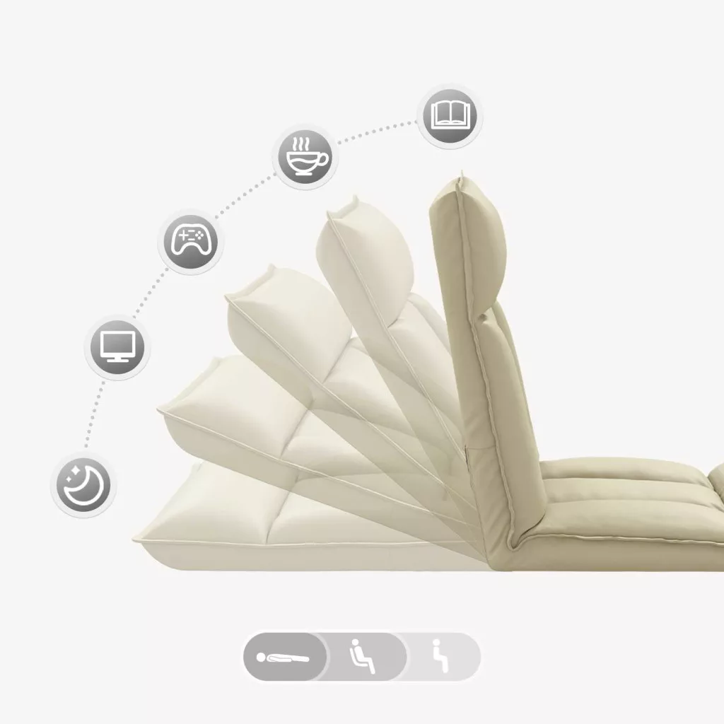 Ez a modern padló szék a kortárs stílust hozza el, akit érdekelnek a változatos ülések otthonaikban. Sleek, trendi megjelenése és kompakt mérete bármilyen helyiségnek modern hangulatot ad. Az állítható háttámla teszi igazán sokoldalúvá, így mindenkinek kényelmet garantál, aki a stílusos, praktikus bútorok kedvelője. Állítható háttámla: A 90-től 180 fokig dőlt háttámlájával a szék maximális kényelmet ad bármihez, mint olvasás, játék vagy tévézés. Az egyszerű mechanizmus révén könnyedén állíthatod, így mindig megtalálod a tökéletes pozíciót. Térspóroló dizájn: Összecsukható felépítése miatt a tárolás egyszerű és hatékony. Ha nem használod, könnyedén összecsukható, így több helyet szabadít fel a nappalidban vagy a hálószobádban. Ez a gondosan megtervezett dizájn ideális kis helyekre, segít rendezetten tartani az otthont, miközben szükség esetén plusz ülőhelyként funkcionál. Minőségi anyag: Műbőrből készült, így luxus és elegancia jár a használatához. Tartós, könnyen tisztítható és stílusos. Ez a felület modern belső terekhez passzol, elegáns hatást kelt, ugyanakkor bírja a mindennapi használatot, minimális karbantartással. Hab kényelem: A magas sűrűségű hab töltet, ami az ülés kényelmét és a támogatást biztosítja. Ez az anyag alkalmazkodik a testformához, elősegítve a helyes testtartást. Rugalmassága pedig garantálja a tartósságot, így ez a szék megbízható kényelem forrása. Sokoldalú használat: Bármilyen környezetbe illik, nappaliba vagy hálószobába, ez a padló szék könnyedén alkalmazkodik a különböző beállításokhoz. Modern dizájnja zökkenőmentesen illeszkedik bármilyen dekorhoz, egyformán támogatva a funkciókat és az esztétikai vonzalmat.