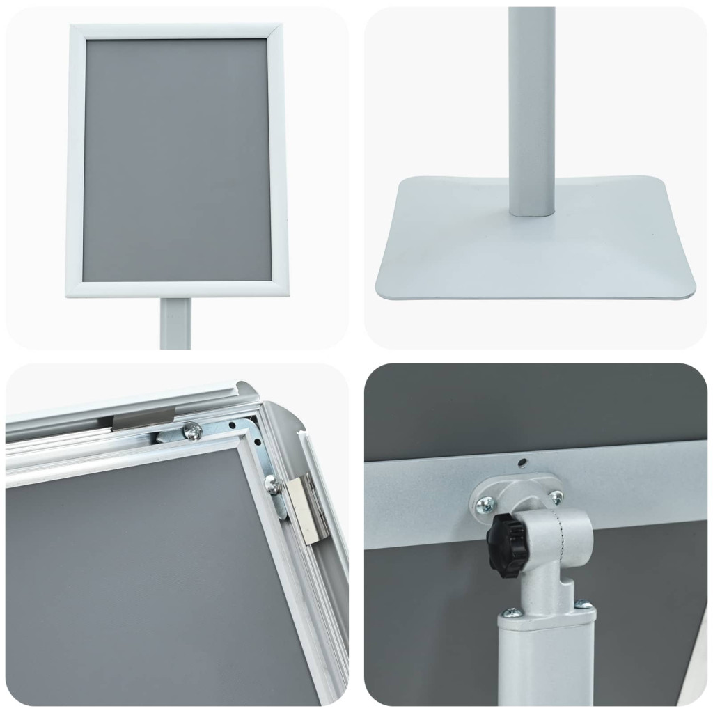 Ez a tartós posztertartó állvány sokoldalú reklám eszköz, ami tökéletes a cégeknek, akik hatékonyan akarják bemutatni a promóciós anyagokat, menüket vagy plakátokat. Az elegáns alumínium váz és öntöttvas alkatrészek kortárs stílust adnak, megtestesítve az egyszerűséget és a funkcionalitást a minimalista kialakítás révén. Az ezüst színe időtlen megjelenést biztosít, jól mutat bármilyen irodában, boltban vagy esemény helyszínen, ami fokozza a marketing tartalom láthatóságát. Tartós anyagok: Az állvány PVC és öntöttvas kombinálásával készült, ami biztosítja a hosszú élettartamot és a megbízhatóságot. A PVC könnyű, de masszív tartást ad, az öntöttvas alkatrészek pedig különösen tartósak. Ez a kombináció tökéletes a forgalmas helyszínekhez. Sokoldalú alkatrészek: Külön forgó technológiával és 360 fokos forgatással rendelkezik, ami lehetővé teszi, hogy a különböző nézőpontból is látható legyen. A plakát cseréje is könnyen megoldható, amitől praktikus a vállalkozások számára. Modern jellemzők: Minimalista formája miatt az állvány minimalista stílusával vonzza a figyelmet a tartalomra. A beállítható posztok segítenek abban, hogy a kiállítások rendezettek maradjanak, így mindig professzionálisan mutat. Rugalmasság: Ez az állvány könnyen alkalmazkodik a különböző felhasználásokhoz, legyen az kiskereskedelmi terület vagy kertészeti esemény. Hordozható, így könnyen áthelyezhető a különböző helyekre, megfelelve a változó üzleti igényeknek. Legyen szó bejelentésekről vagy bemutatókról, ez az állvány nagyszerű befektetést képvisel. Karbantartás & ápolás: Az állványt könnyű tisztán tartani, nedves ruhával letörölhető, így mindig rendezett és tiszta. A rendszeres karbantartás hosszabb élettartamot biztosít, garantálva a következetes minőséget.