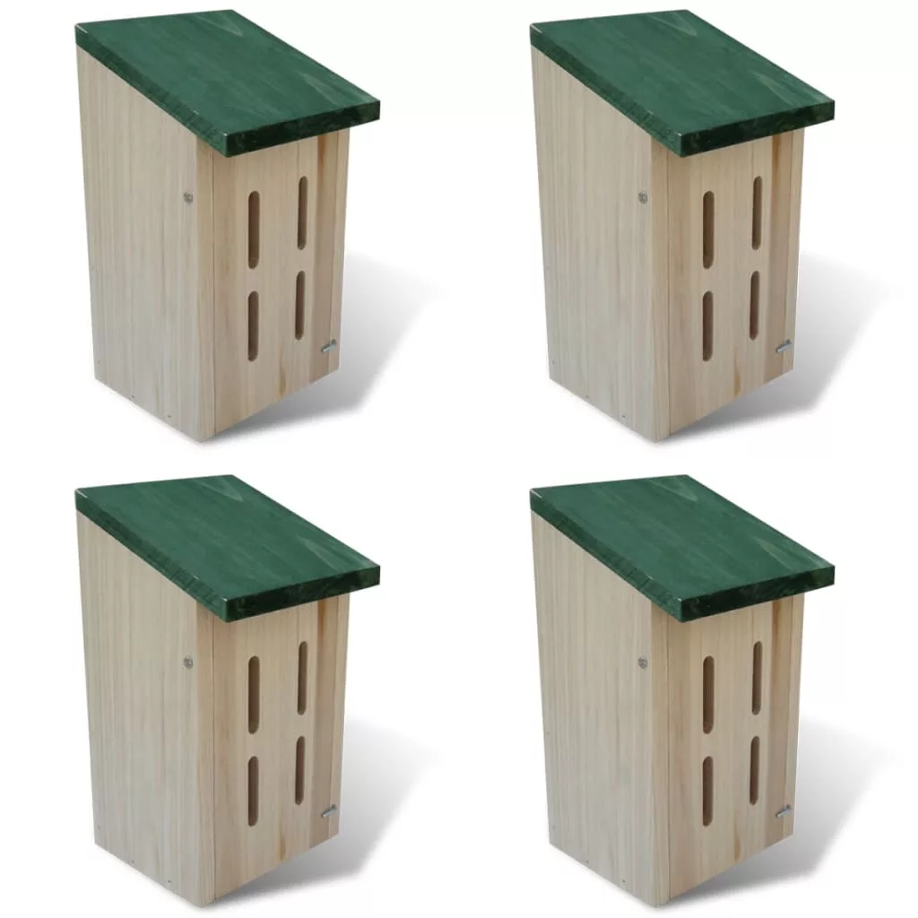 Ezek a szeretni való ház készletek erős fából vannak, és a színes barátainknak van tervezve. A ház természetes fa egy zöld tetővel, ez egy szép díszítés, valamint egy kitűnő fészkelő hely a lepkéknek. A pillangó házak nyílásokat tartalmaznak, a lepkéknek menedék a szél és az időjárás ellen. Minden egyes pillangó ház ajtót tartalmaz hogy tisztítani lehessen, mellyel jobban vigyázni a szárnyas barátaira. Ellátott egy fém fogassal, ezt fel lehet szerelni a kertben.A szállítás tartalmaz 4 pillangó fészekdobozt.