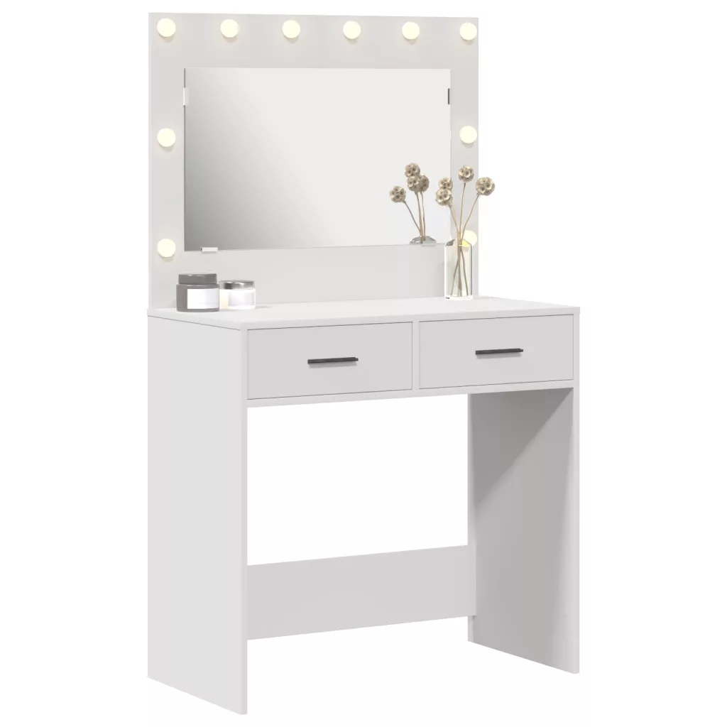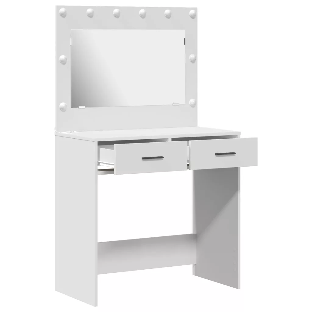 Ez a pipereasztal a praktikusságot és a modern megjelenést ötvözi. Műszaki fából készült, gyönyörű matt fehér felülettel, ami szuperül passzol a mai trendekhez. Külön helyet biztosít a sminked és ápolási cuccaid számára. Bőséges tárolóhely: Két tágas fióknak köszönhetően könnyen rendben tarthatod a sminkedet, ékszereidet és egyéb dolgaidat. Segít csökkenteni a rendetlenséget, és gyorsan megtalálhatod, amire szükséged van — ideális neked, ha sok terméked van. Beépített LED világítás: A LED fények biztosítják, hogy mindig jó fényben sminkelj. A Hollywoodi stílusú lámpák szabályozható fényerőt adnak, segítve a hangulat megteremtésében a szépség rutinodhoz. Élvezd a jó megvilágítást a tökéletes megjelenésért! Modern dizájn: Az elegáns dizájn feldob bármilyen hálószoba hangulatát, a tiszta vonalak pedig minden belső stílushoz passzolnak. Stílusos választás felnőtteknek, akik szeretnék feldobni a helyüket és stílusosan ápolják magukat. Tartós MDF felépítés: Magas minőségű MDF-ből készült, így tartós és hosszú élettartamú. Ellenáll a mindennapi használatnak, megőrzi formáját — éppen amire szükséged van egy gyakorta használt darabtól. Univerzális felhasználás: Beltéri használatra való, praktikus a különböző stílusokhoz. Fő hálószobában, vendégszobában, vagy stílusos stúdióban is jól mutat. Ideális felnőtteknek, akik keresnek egy stílusos, mégis funkcionális kiegészítőt a napi rutinjukhoz. Kérjük, vegye figyelembe, hogy csak tanúsított DC 5V bemenetet használjon. A magasabb feszültség túlmelegedést okozhat, és károsíthatja a készüléket, valamint túlhevülés és tűz kockázatát jelentheti. Ne csatlakoztassa ezt a terméket semmilyen más tápegységhez, mint amit a kézikönyvben, a névtáblán vagy a vidaXL kifejezetten ajánlott. Ezt a készüléket nem használhatják 14 évesnél fiatalabb gyermekek, valamint csökkent fizikai, érzékszervi vagy mentális képességekkel rendelkező személyek, vagy elektronikai eszközök használatában tapasztalatlan vagy tudás nélküli személyek. Az elektromosság veszélyes. A nem megfelelő telepítés, használat vagy módosítás (egyedi alkatrészek cseréje) a készülék károsodásához vezethet, áramütést és veszélyt okozva a felhasználónak. Ne működtesse ezt a terméket robbanásveszélyes atmoszférában, például gyúlékony folyadékok, gázok és por jelenlétében, vagy 50 Celsius foknál magasabb hőmérsékleten. Ne kapcsolja be a terméket, ha a csatlakozó kábel vagy tápegység láthatóan sérült. Ha a lámpa külső hajlékony kábele vagy vezetékje sérült, azt kizárólag a gyártó vagy annak szervizügynöke, illetve hasonló képesítéssel rendelkező személy cserélheti ki, hogy elkerülje a veszélyt. A telepítés és karbantartás alatt kapcsolja ki az áramot. Győződjön meg arról, hogy a fényforrások lehűltek. Ennek a lámpatestnek a fényforrása nem cserélhető; ha a fényforrás elérte élettartamának végét, az egész lámpát ki kell cserélni. Csak belső használatra, ne használja kültéren.