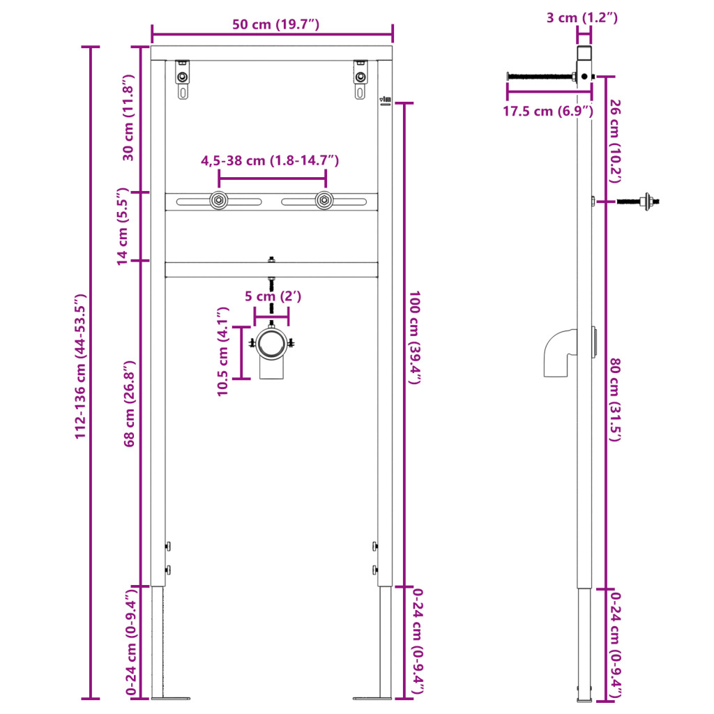 Rejtett Szerelőkeret Mosdóhoz 50x112-136 cm Acél