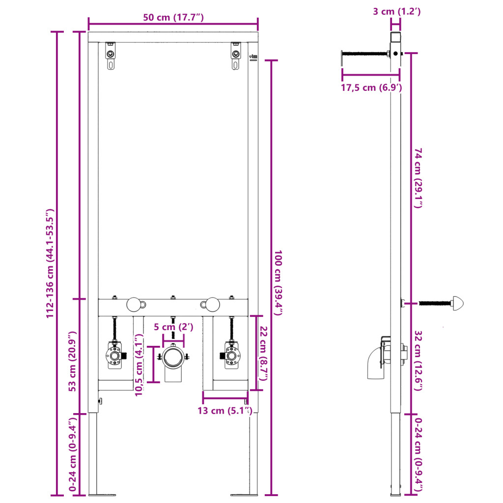 Rejtett felszerelési keret bidéhez 50x112-136 cm Acél