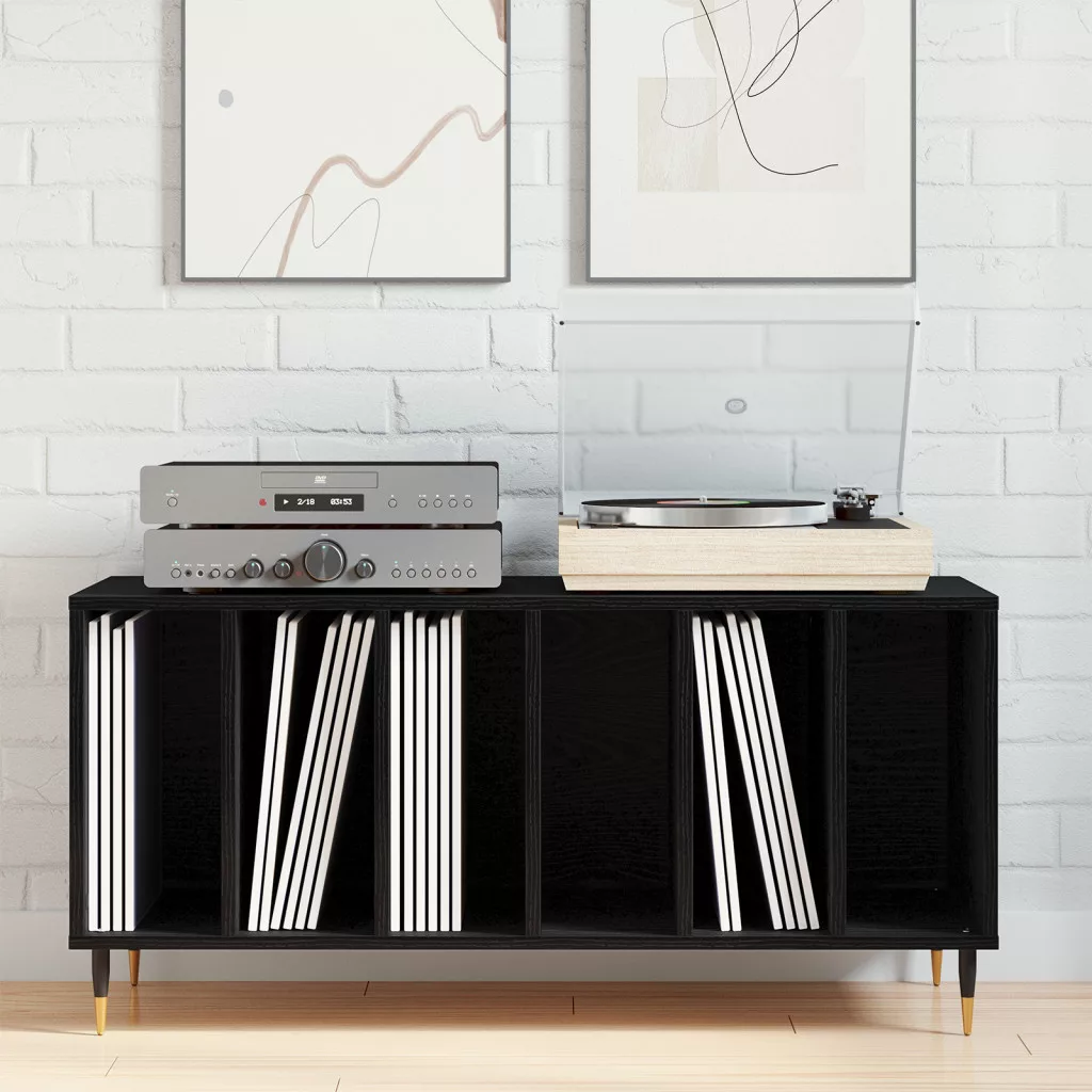 Ez a kortárs média tároló szekrény ötvözi a stílust és a praktikát, így tökéletes hely a médiafontos dolgok rendezésére. A sima fekete tölgy borítás világosabbá teszi a lakóteret, miközben bőséges helyet ad az elektronikának, DVD-knek és kiegészítőknek. Tágas tárolóhely: Ez a szekrény öt praktikus nyitott rekesszel rendelkezik, amik mindent elnyelnek a médiatárhelyedben, a DVD-ktől a játékkonzolokig. Segít rendben tartani a teret, elengedhetetlen bármilyen szórakoztató központ számára. Stílusos dizájn: A szekrény sima fekete tölgy borítása elegáns megjelenést ad, ami jól illik a nappalidhoz vagy a házimozidhoz. Modern hangulata miatt tényleg feltűnő darab, ami sokféle dekorációhoz passzol. Tartós anyagok: Kiváló minőségű, tömörített fából készült, így hosszú élettartamra számíthatsz. A matt felület védi a karcolásoktól és a mindennapi használattól, így sokáig szép marad. Sokoldalú használat: Nem csak médiatárolásra jó; stílusos helyet ad a dekoratív tárgyaidnak is. Tökéletes felnőtteknek és bárkinek, aki szeretné feldobni a lakóterét, mindenféle igényt kielégít, miközben segít rendben tartani. Könnyű karbantartás: A szekrény állapotát simán megőrizheted. Csak néha portalanítsd, és alkalmanként töröld le egy nedves ronggyal. Csak ügyelj, hogy ne használj durva vegyszereket, hogy a gyönyörű felület sokáig megmaradjon.