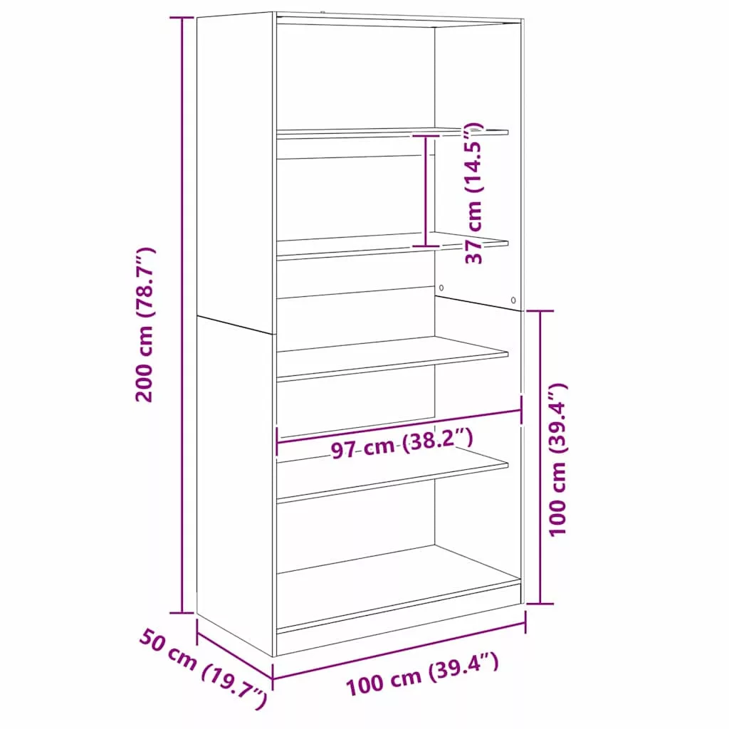 Ruhásszekrény polcokkal Fekete tölgy 100 x 50 x 200 cm Faanyag