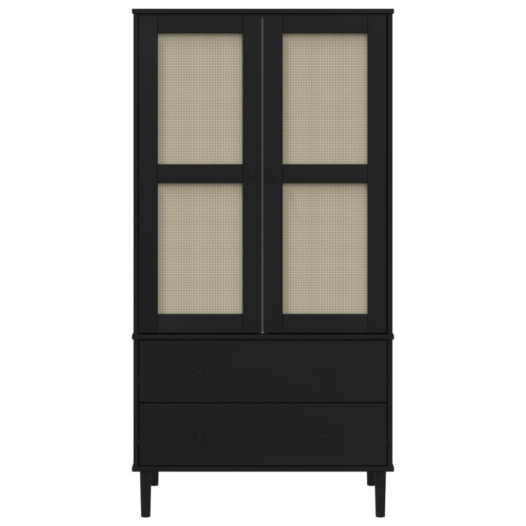 SENJA fekete rattanhatású ruhásszekrény 90 x 55 x 175 cm