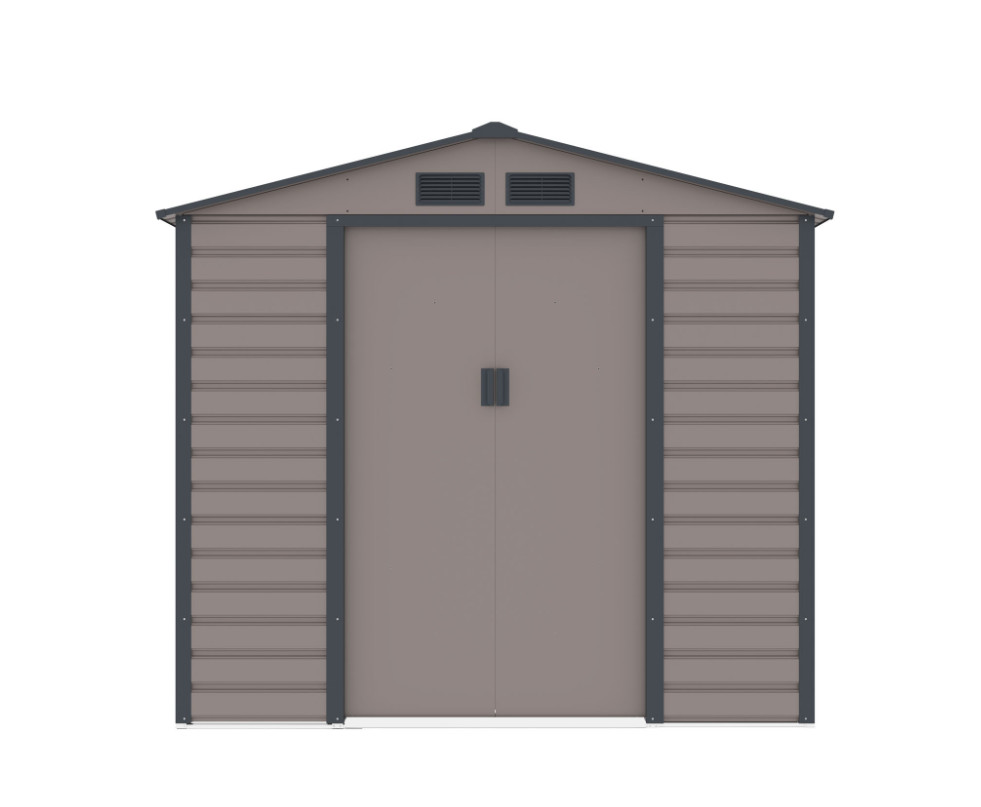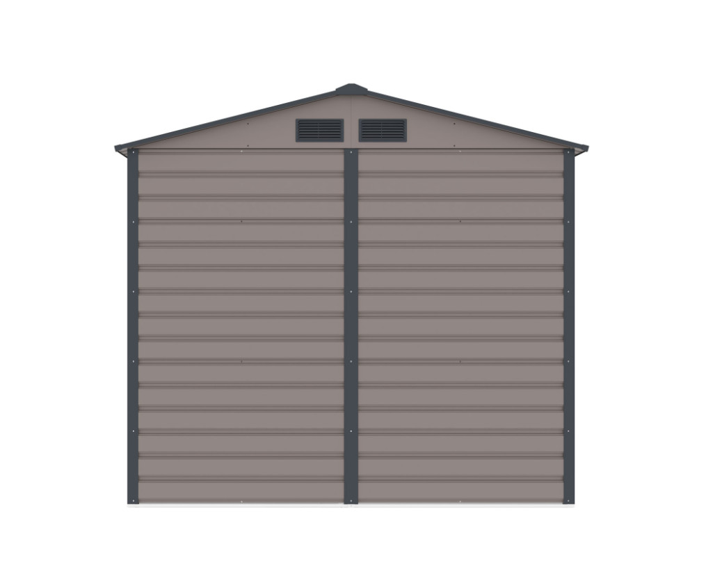 A kerti ház kiváló minőségű 0,25 - 0,30 mm vastag profilozott acéllemezből készült. A felülete porszórással van bevonva. Acélszerkezete horganyzott és szellőzőrácsokkal is rendelkezik.Méretek és tömeg