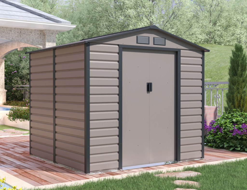 A szilárd horganyzott kerethez rögzítse a horganyzott, porszórással bevont acél lemezt, mely ellenáll a rossz időjárásnak. A csomag tartalmaz ajtókilincseket is, mely segítsévél távol tarthatja a tárolótól a hívatlan vendégeket is.