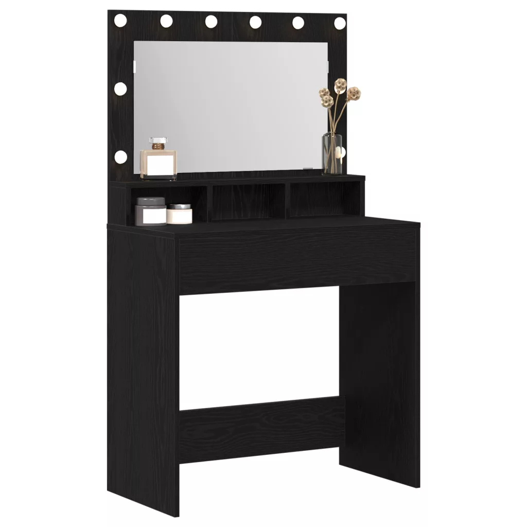 Sminkasztal LED Fénnyel, Fekete Tölgy, 79x41x135 cm